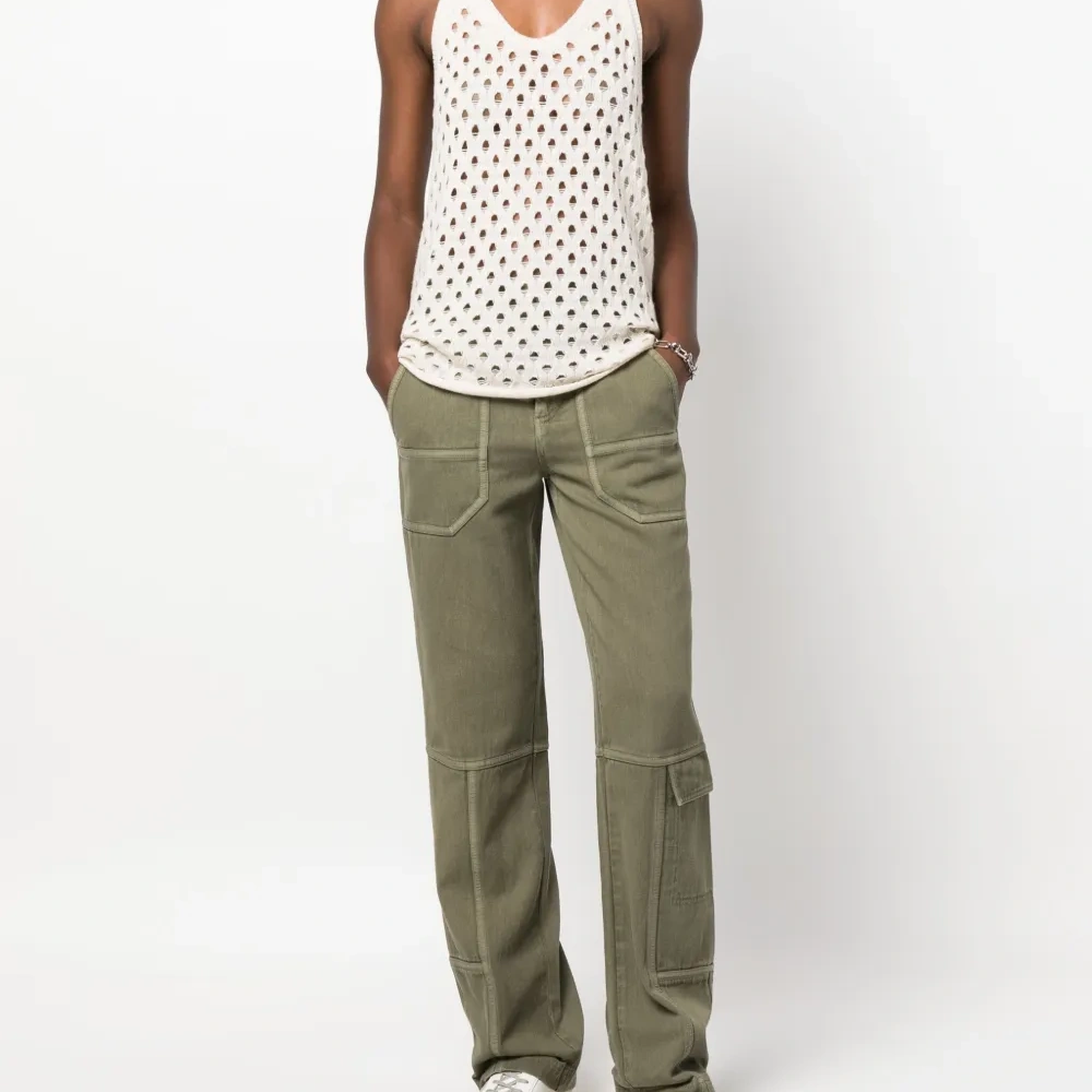 Зеленый, органический хлопок, декоративные швы, вставки, петли для ремня, застежка на молнии и пуговице спереди, прямой крой, расклешенный крой, два накладных кармана спереди и два накладных кармана сзади. Узнать больше о том, какие товары получают отметку «Ответственный выбор», можно из материала «Как мы оцениваем экологичность и этичность».