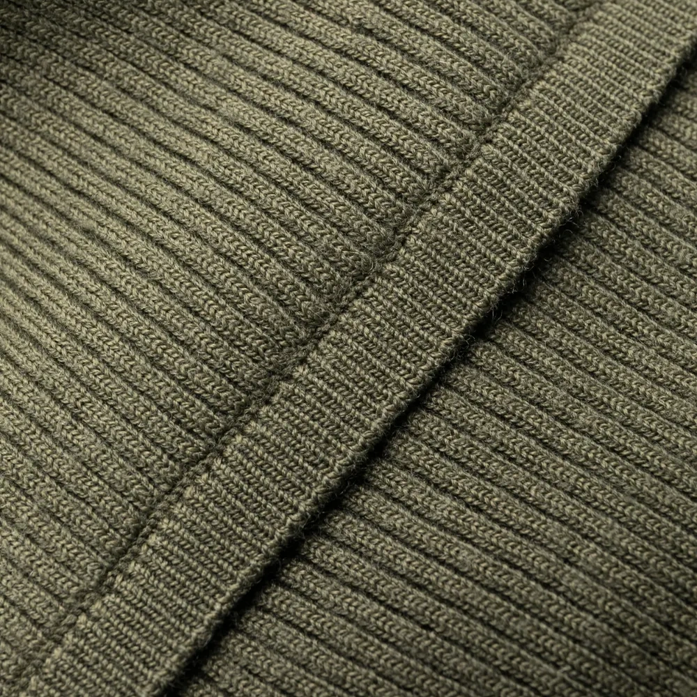 Зеленый, смесовая шерсть, трикотаж в рубчик, вырезные детали, круглый вырез, длинные рукава, логотип-аппликация и прямой подол.