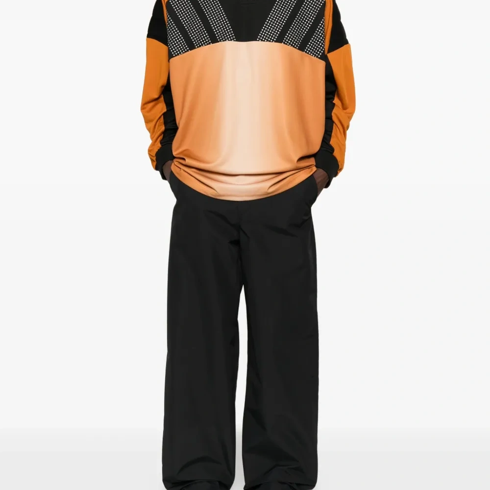 оранжевый V-образный вырез эффект омбре длинные рукава вставки из черных панелей
