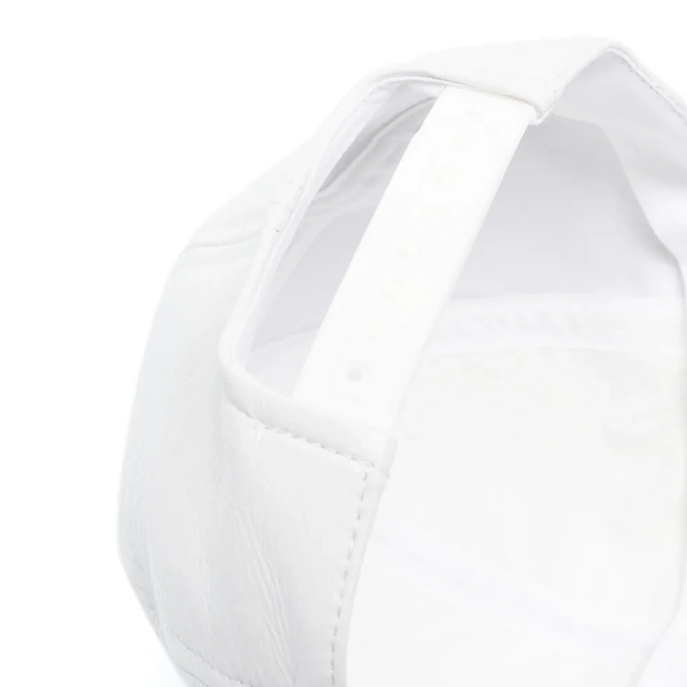 Белый, хлопок, фактурная отделка, вышитый логотип сбоку, плоский козырек, шесть панелей и регулируемый дизайн.
