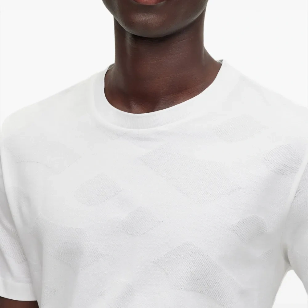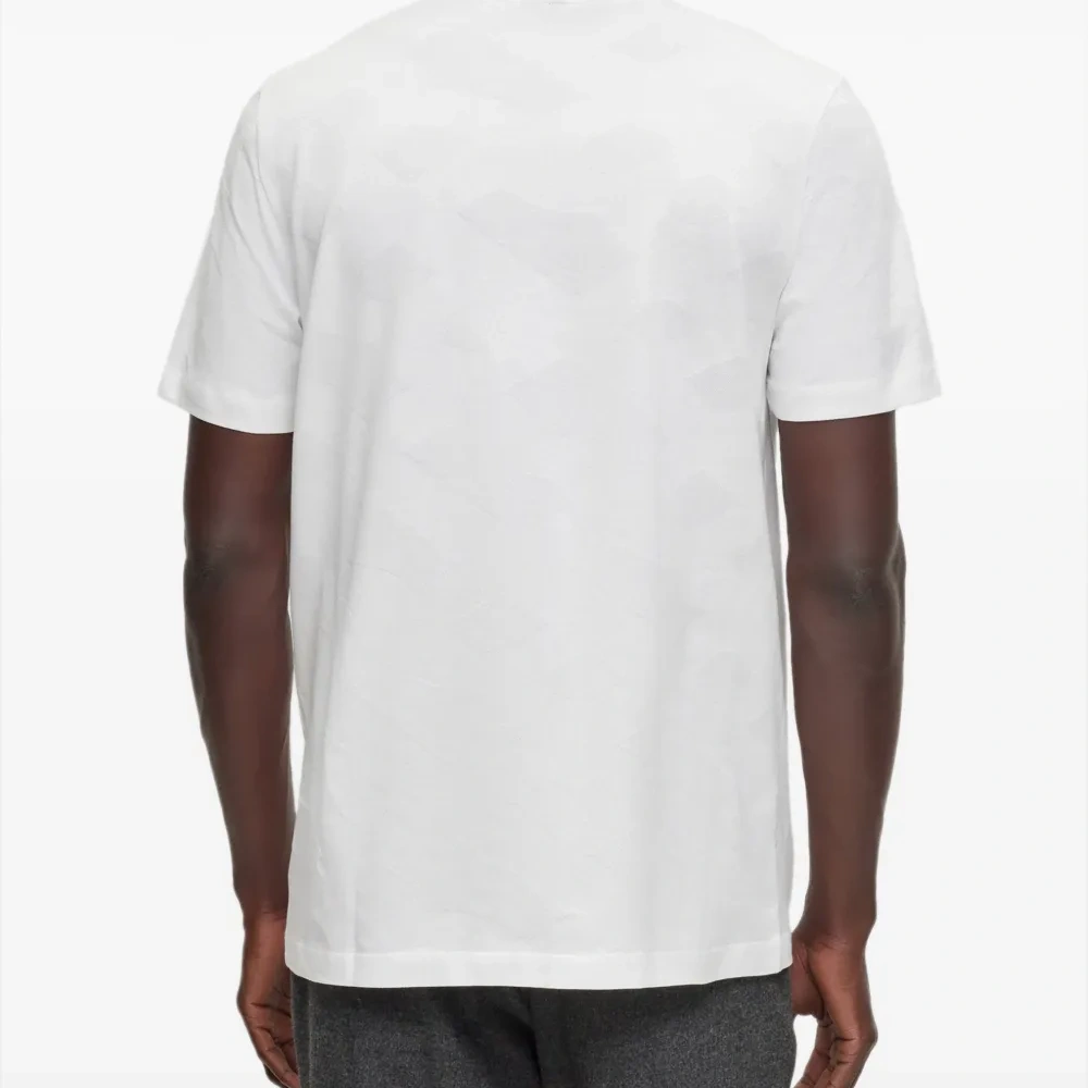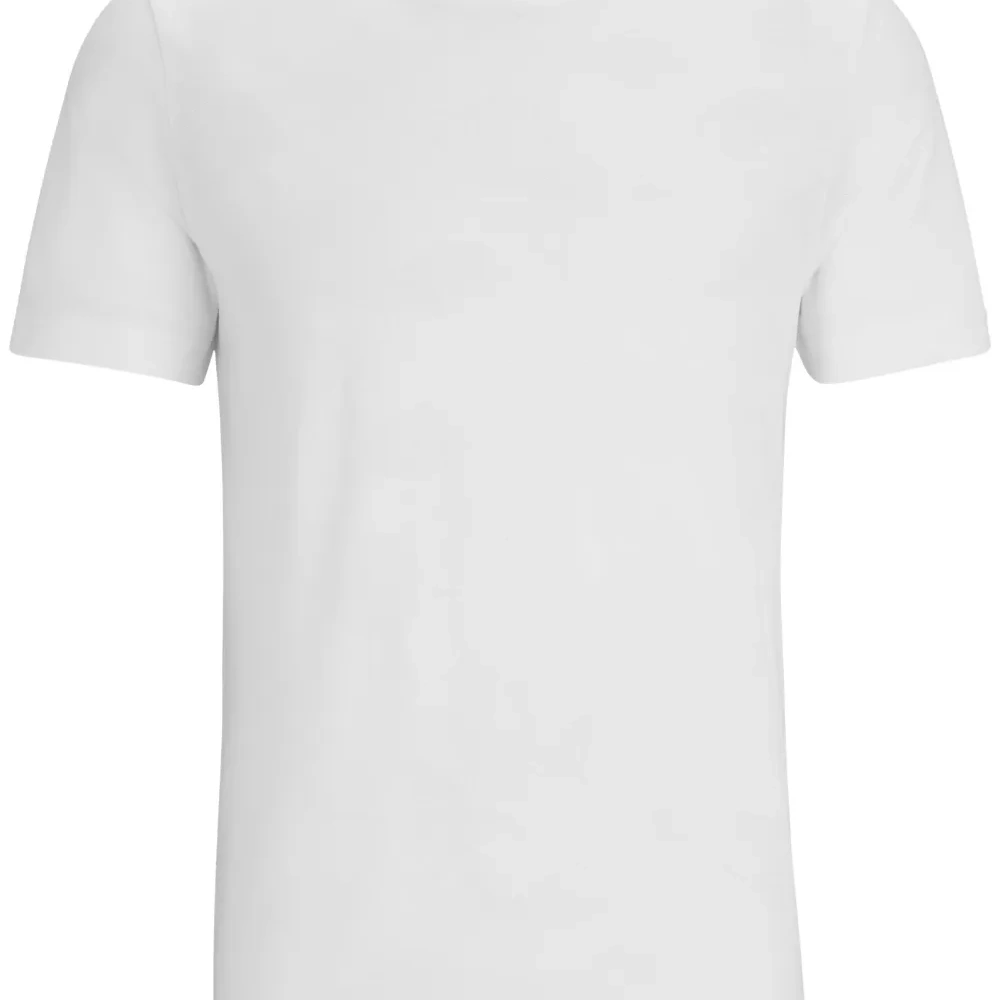 Белый, хлопок, маленькая подвеска с логотипом, круглый вырез, короткие рукава и прямой подол.