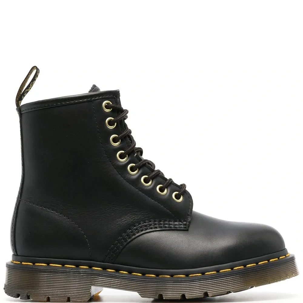 Черный, телячья кожа, контрастная строчка, шнуровка спереди, петля для подтягивания с логотипом, закругленный носок и рант.