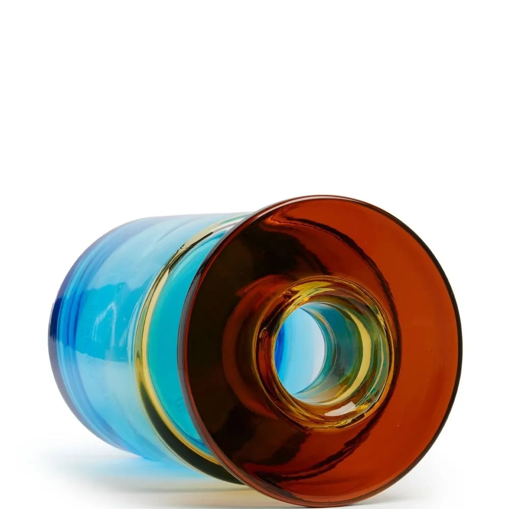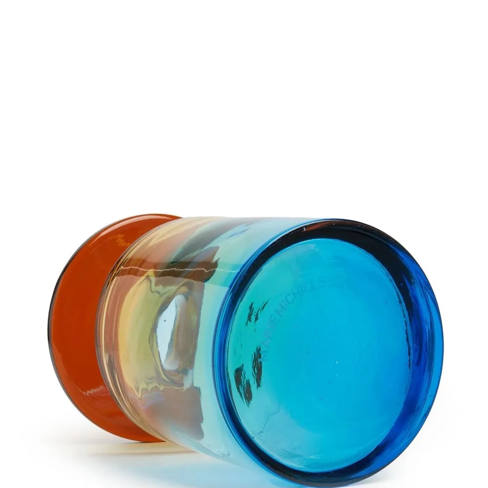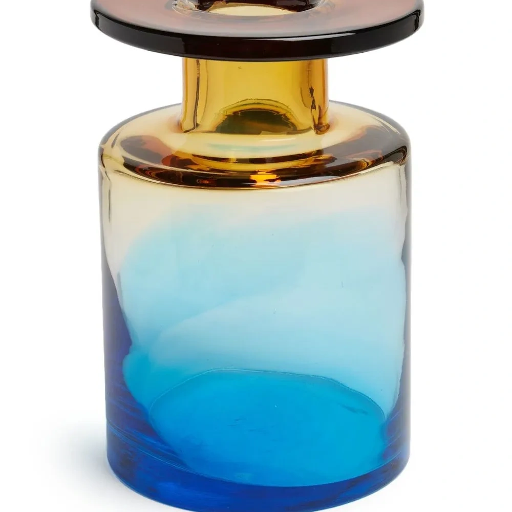 Синий, янтарно-желтый, стекло, градиентный эффект и цилиндрический дизайн.