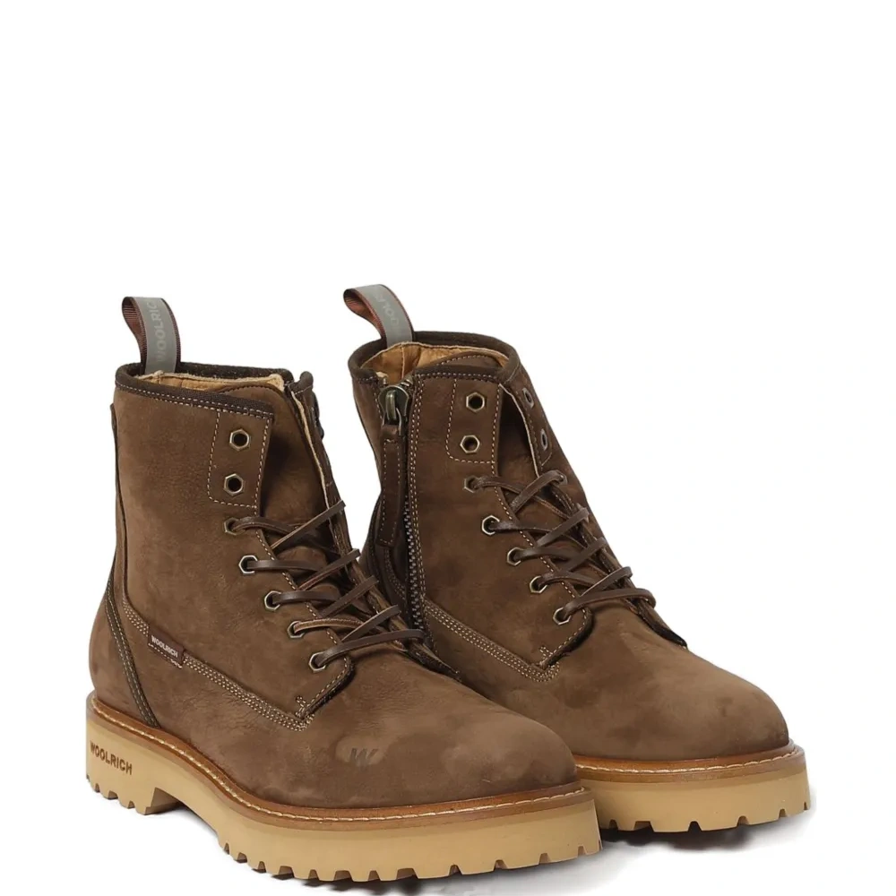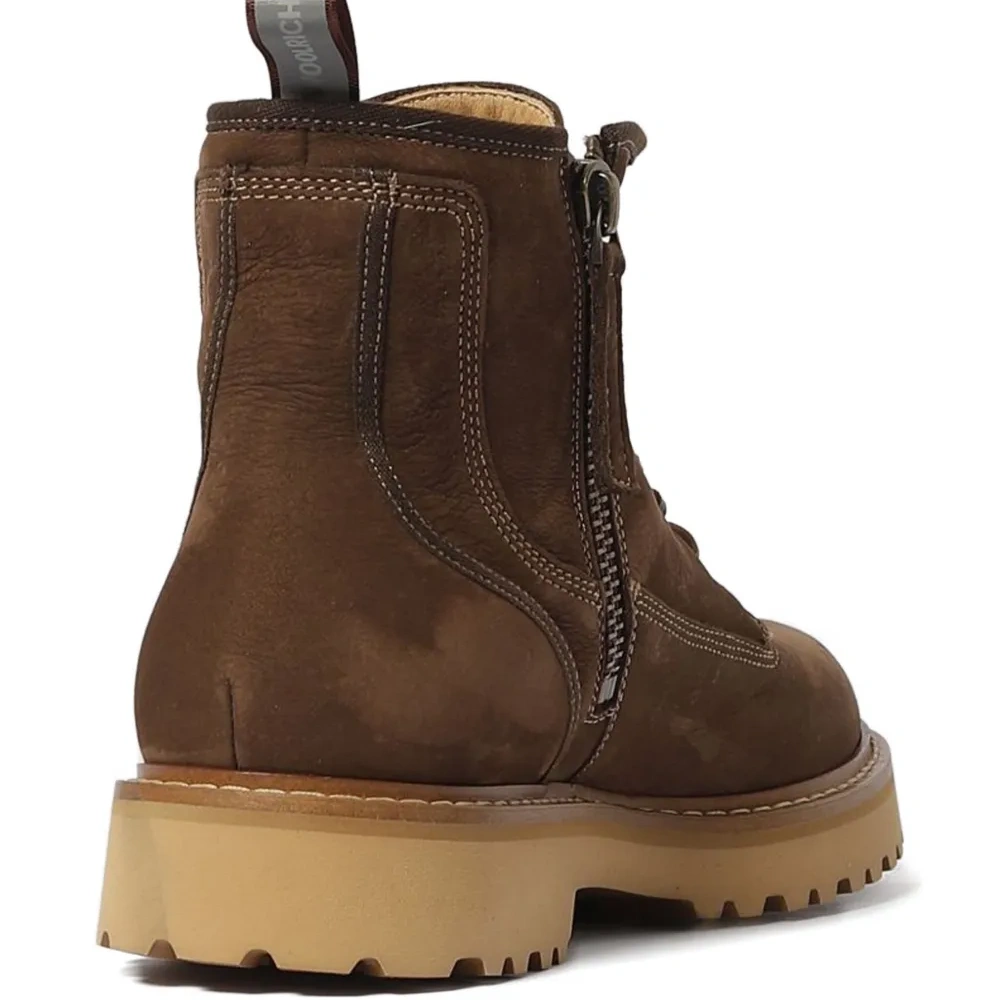 коричневые, шнуровка, боковая молния, резиновая подошва с протектором, нашивка с логотипом сбоку