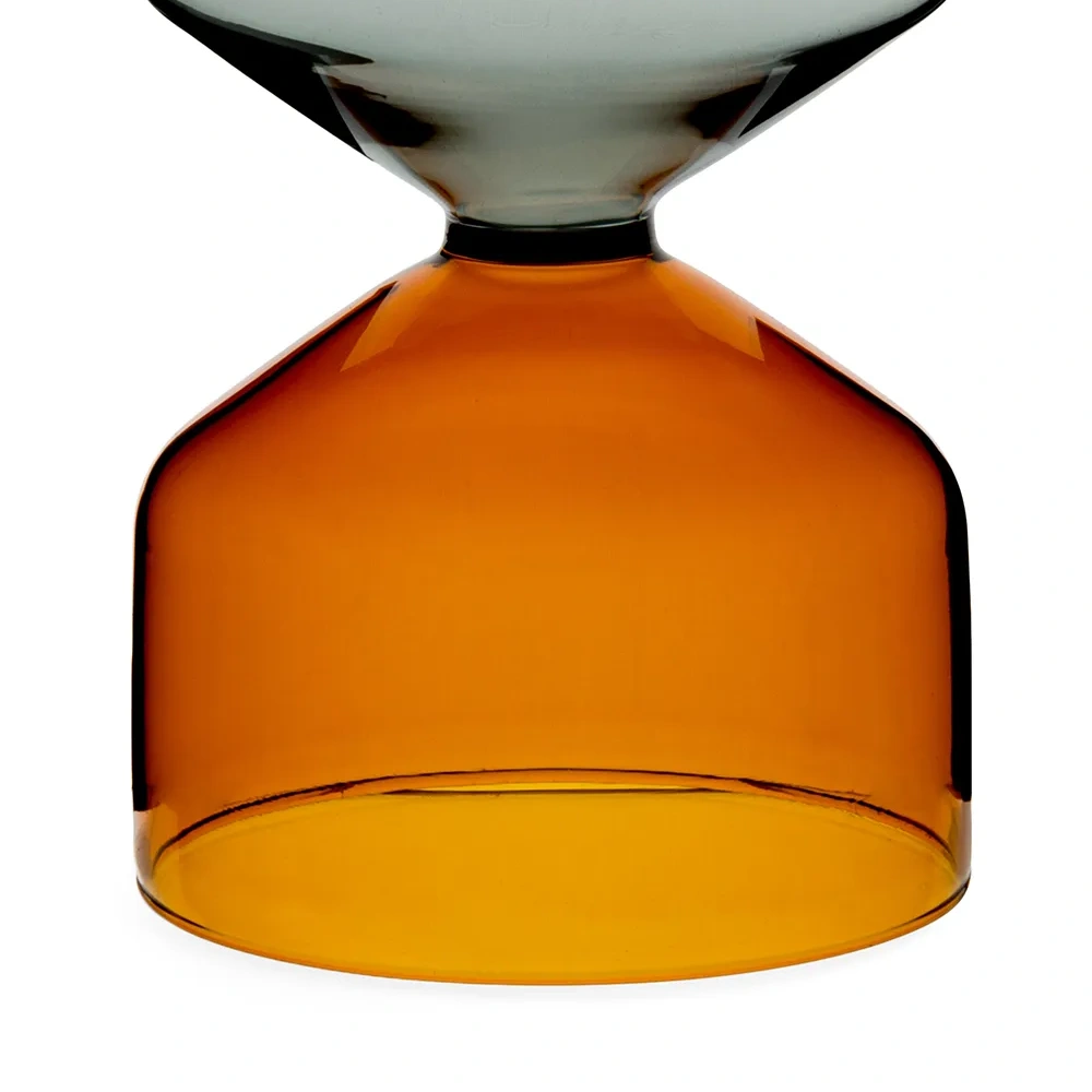 Сочетание двух оттенков, прозрачный материал и цилиндрический дизайн.