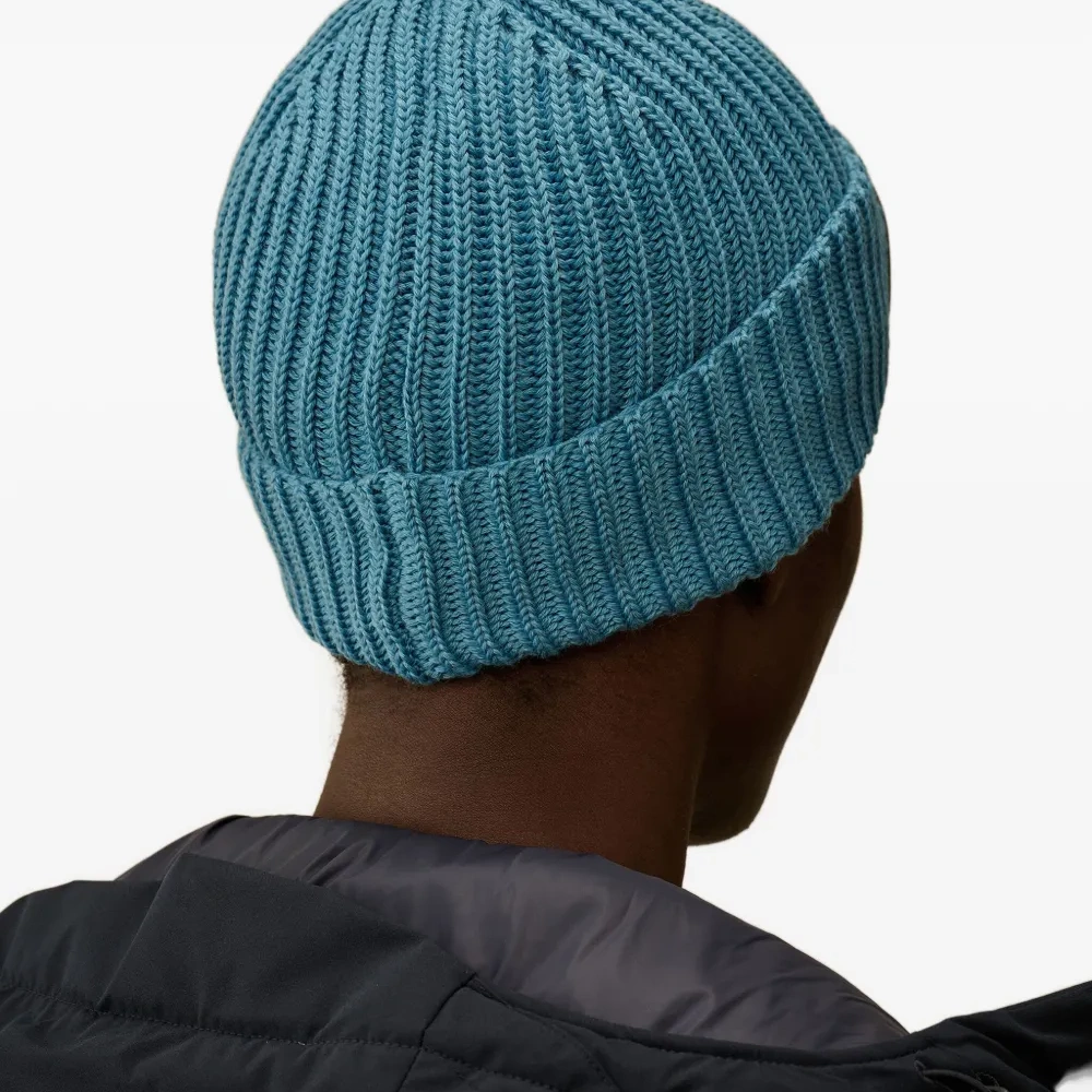 Шерстяная шапка бини в рубчик с линзами