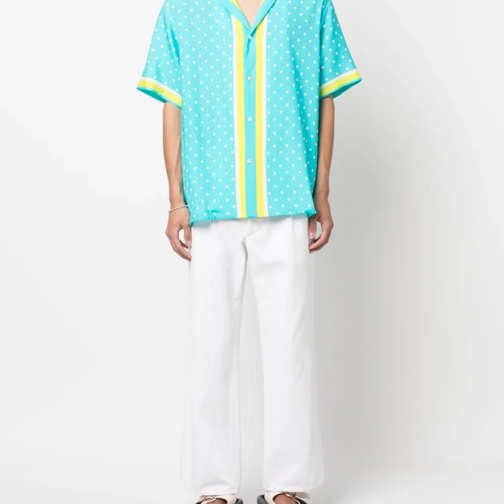 Шелковая рубашка в горох с короткими рукавами