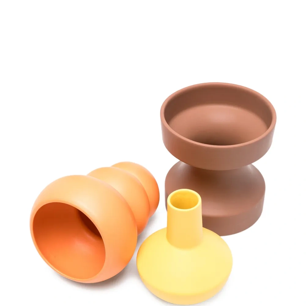 набор из трёх ваз сферической формы оранжевого, жёлтого и коричневого цветов, выполненных в виде составленных друг на друга шаров. В комплект входят: коричневая ваза (высота 16 см, ширина 15 см, глубина 15 см), жёлтая ваза (высота 14 см, ширина 12 см, глубина 12 см) и оранжевая ваза (высота 19 см, ширина 12 см, глубина 7 см).