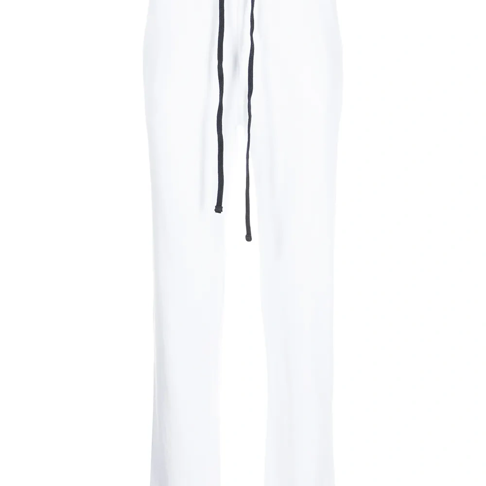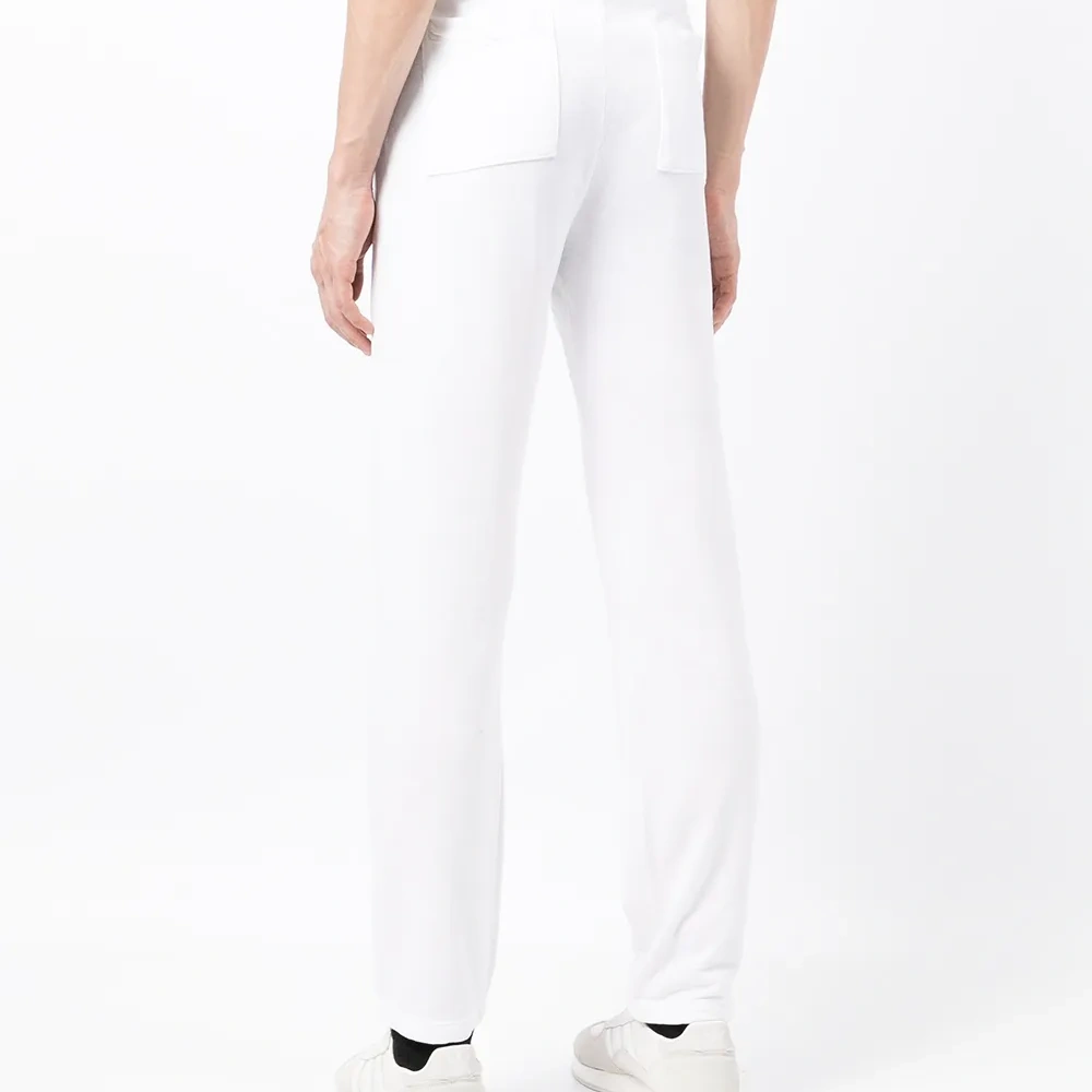 Белый, хлопок, материал c флисовой текстурой, кулиска на талии, два вшитых кармана по бокам и прямой крой.