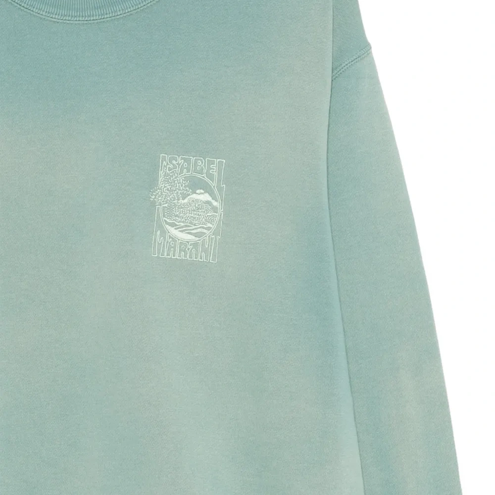 светло-зеленый свитшот с графическим принтом, круглым вырезом, длинными рукавами, ребристыми манжетами и ребристым низом