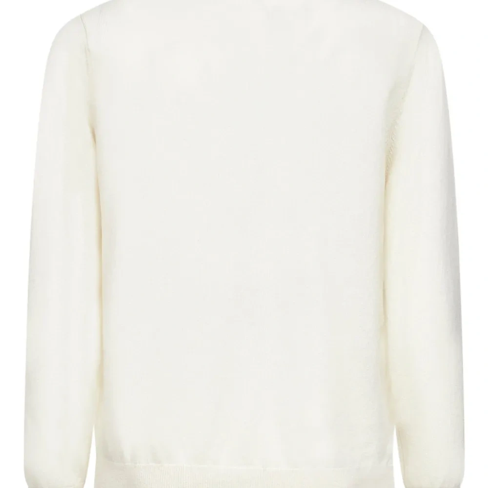 слоново-костный (айвори) рубчатый джемпер с воротником поло, V-образным вырезом, длинными рукавами, вышивкой на запястье, ребристыми манжетами и ребристым нижним краем