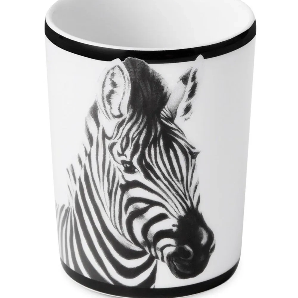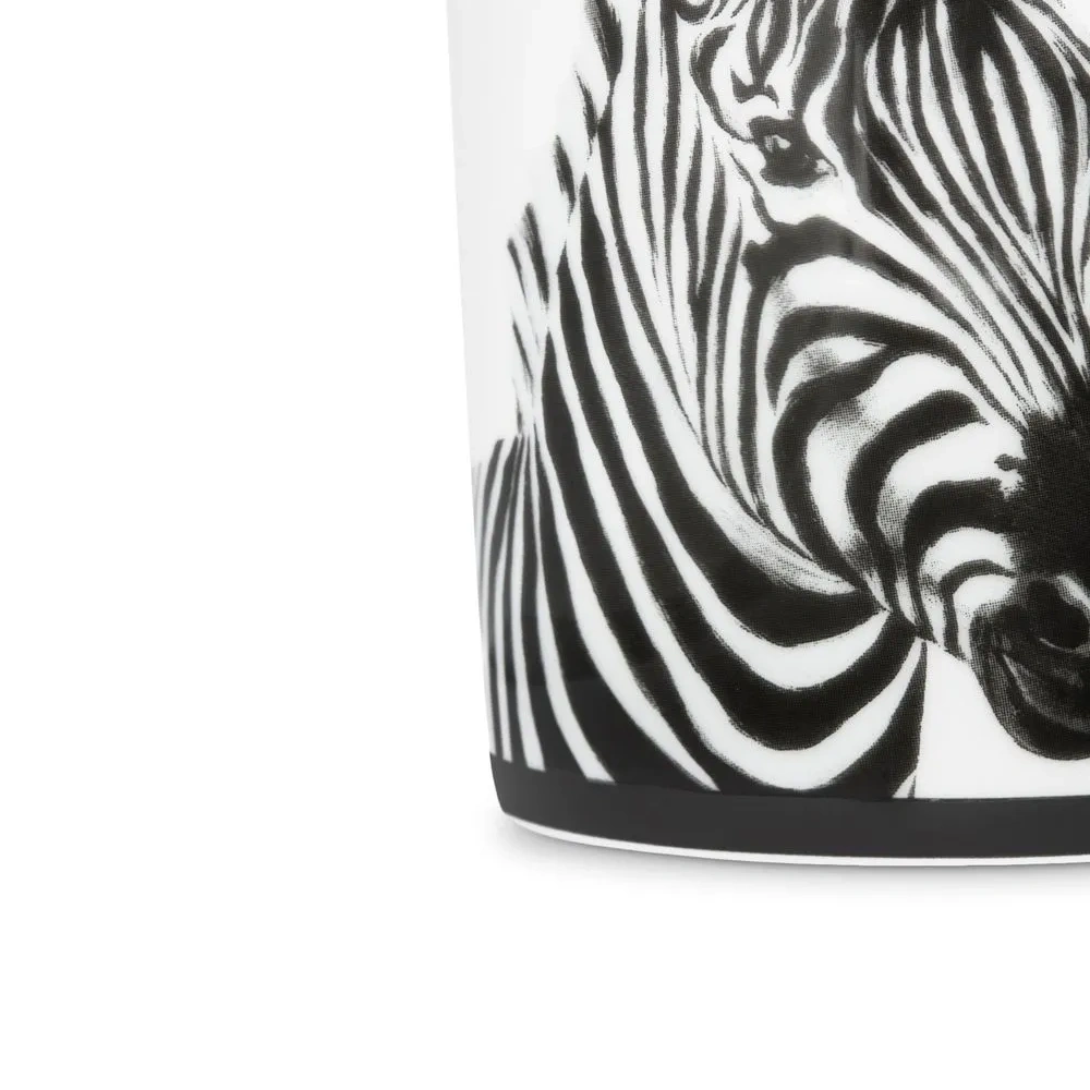 Черный/белый, фарфор, зебровый принт и подходит для мытья в посудомоечной машине.