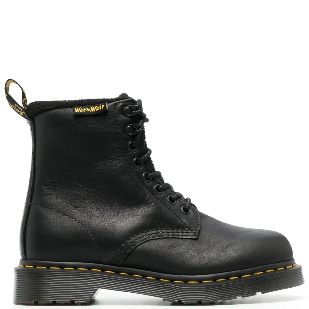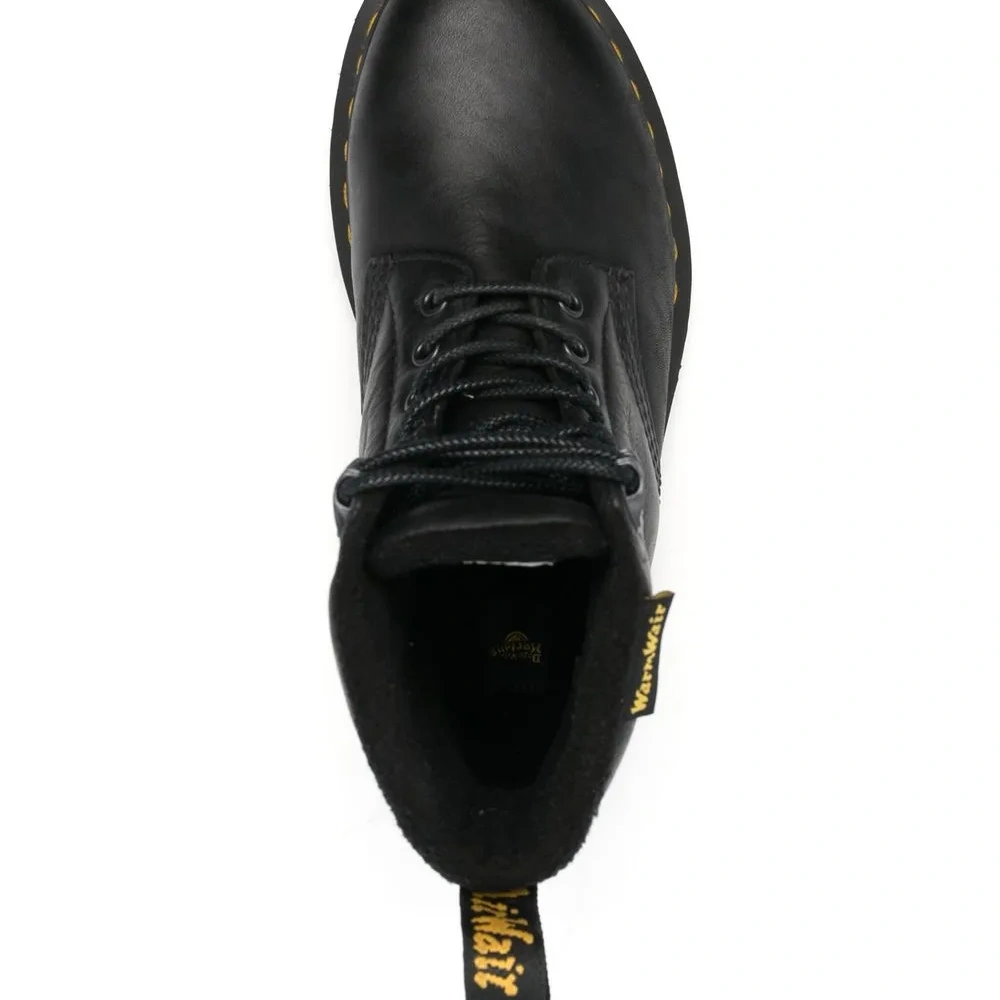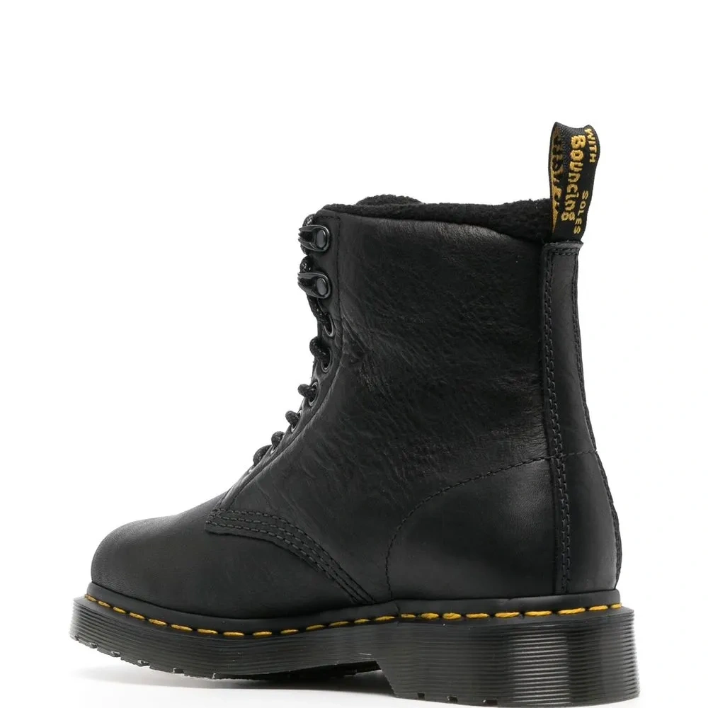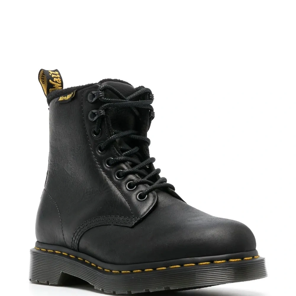 Черный, телячья кожа, флисовая подкладка, искусственно состаренное покрытие, контрастная строчка, петля для подтягивания с логотипом, закругленный носок, шнуровка спереди и рант.