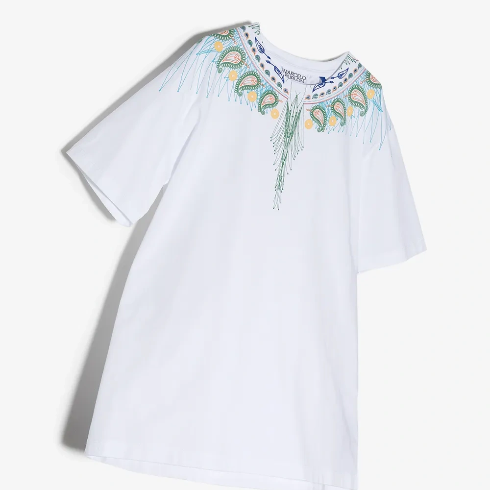 Круглый вырез, принт Marcelo Burlon Wings, принт пейсли, короткие рукава и прямой подол. Цвет: белый.
