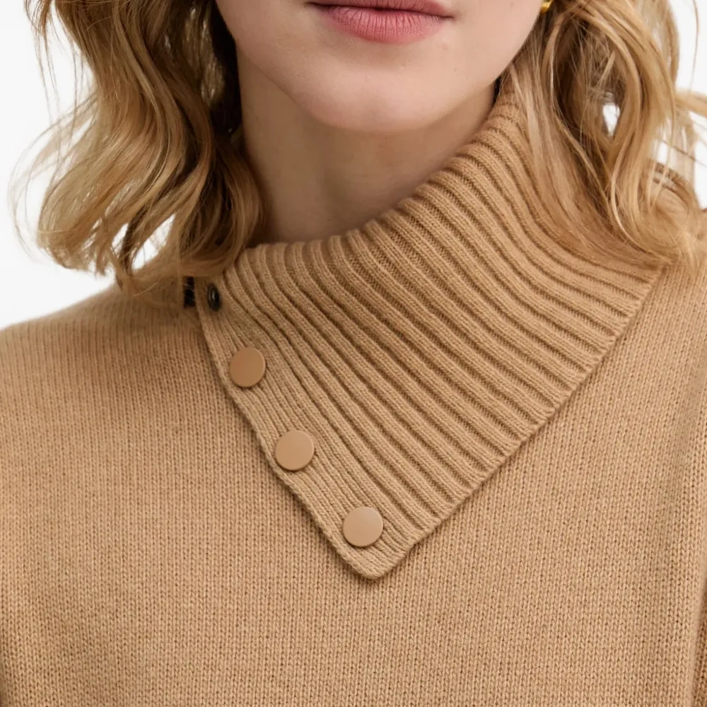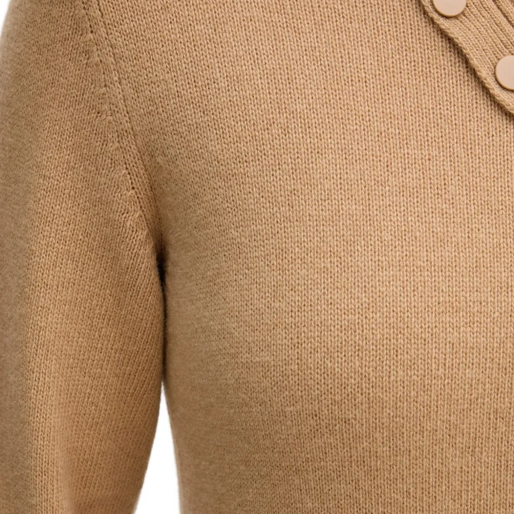 светло-коричневый, ребристые детали, воротник-стойка, застёжка на пуговицы, длинные рукава, вязаная структура