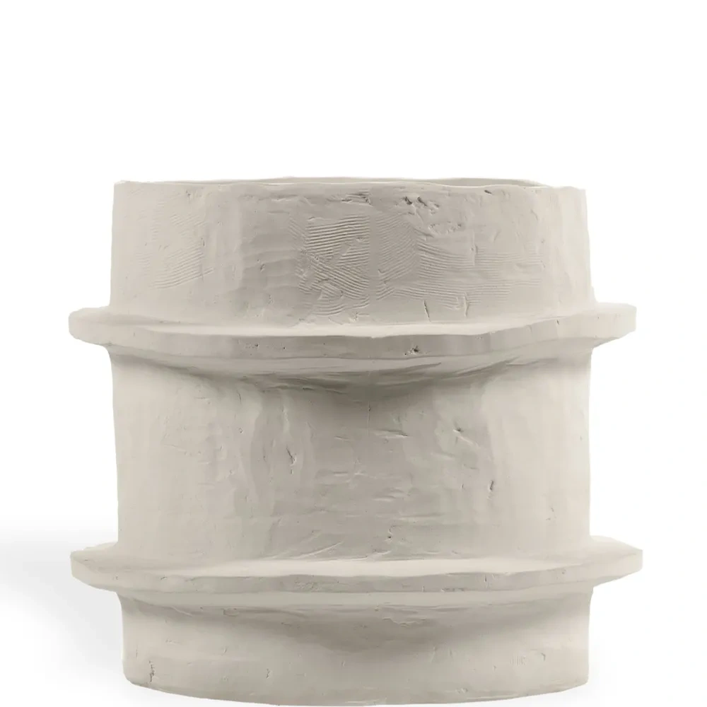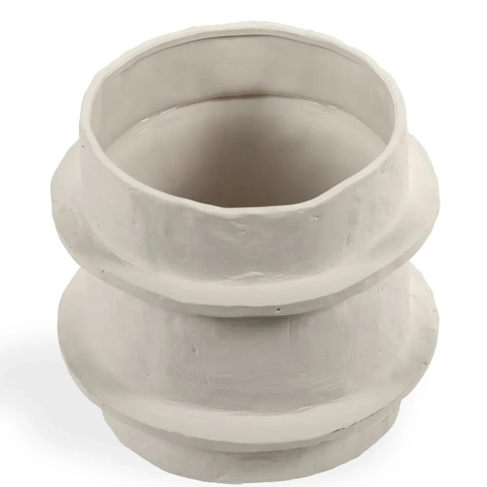 Песочно-бежевый, керамика, объемная аппликация, дизайн с открытым верхом и цилиндрическая форма.