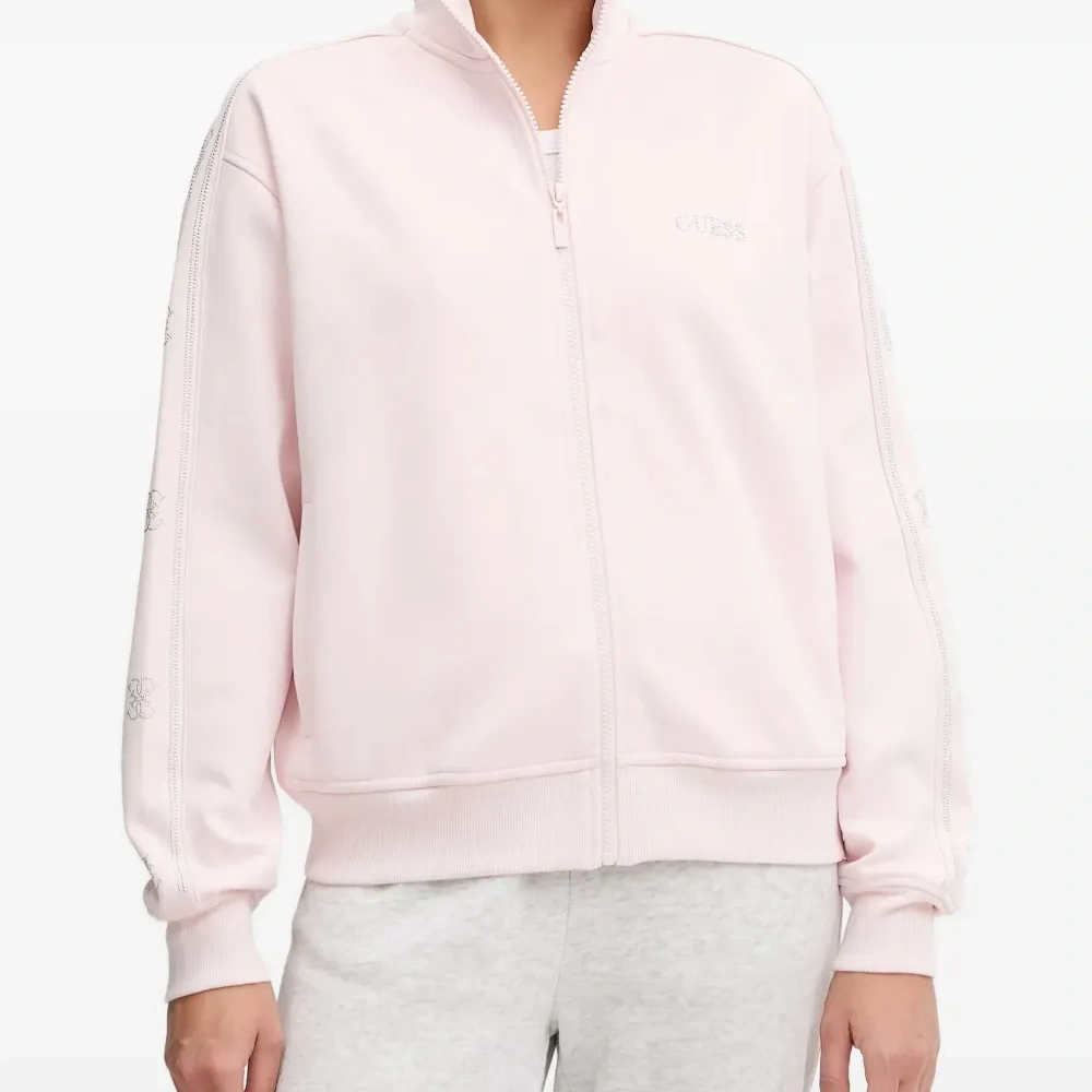 светло-розовый, детали с логотипом, застёжка-молния, длинные рукава, высокий воротник, рубчатый низ