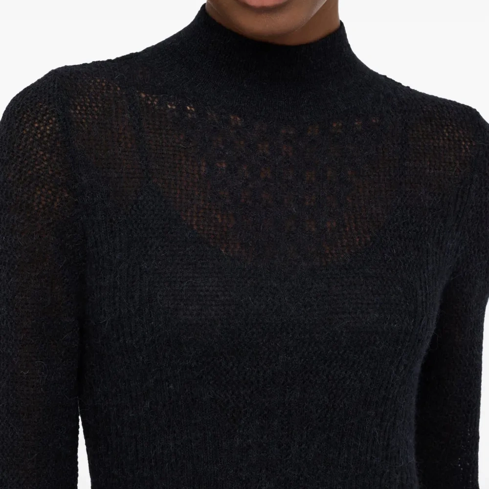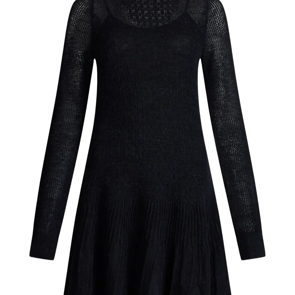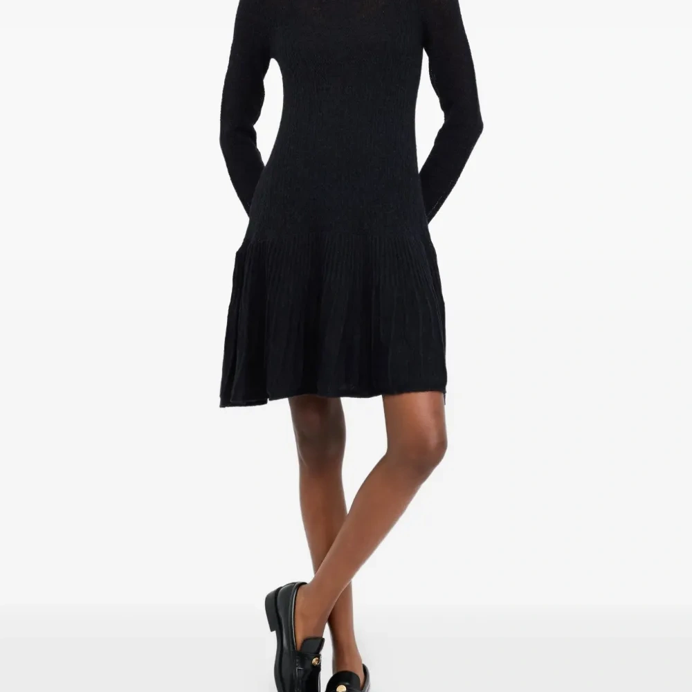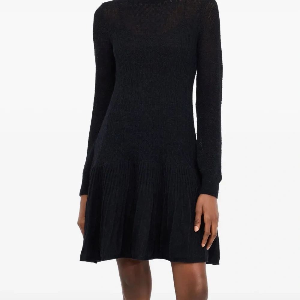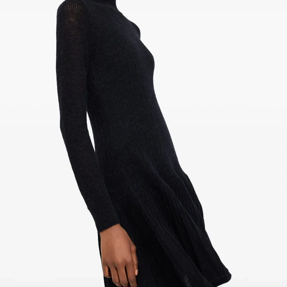 черный высокий воротник длинные рукава оборчатый подол