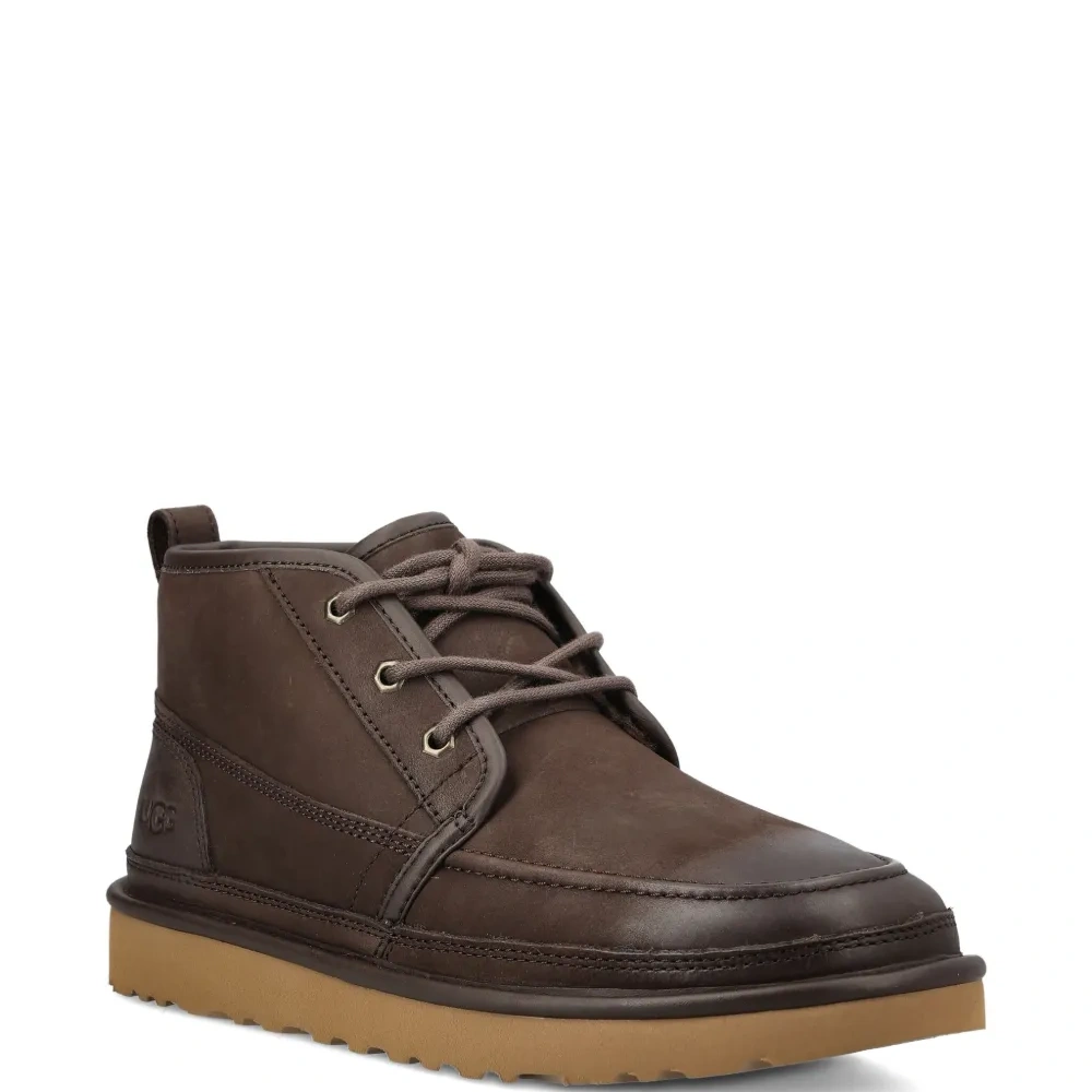 коричневый верх из нубука, петля сзади для удобства надевания, шнуровка, логотип