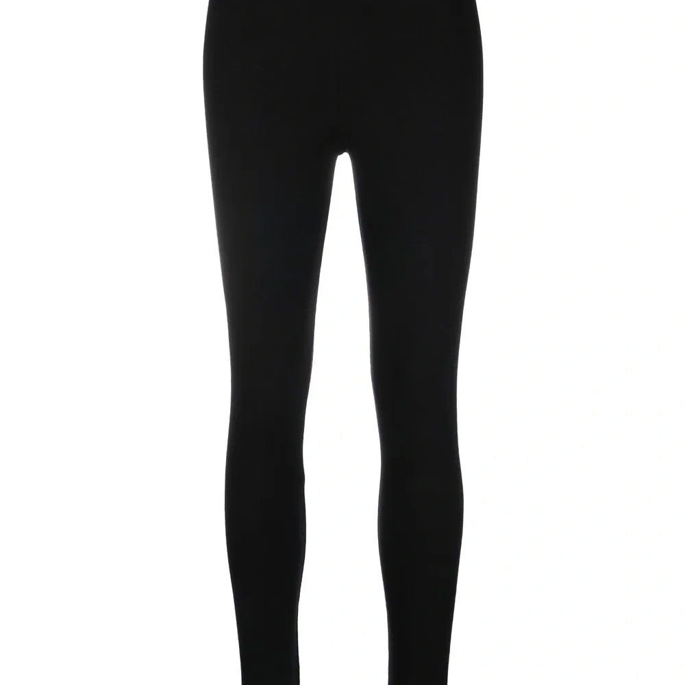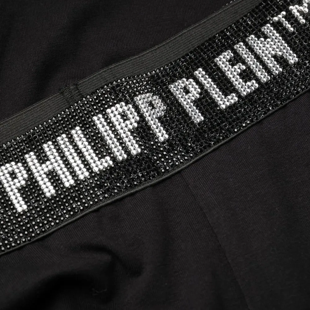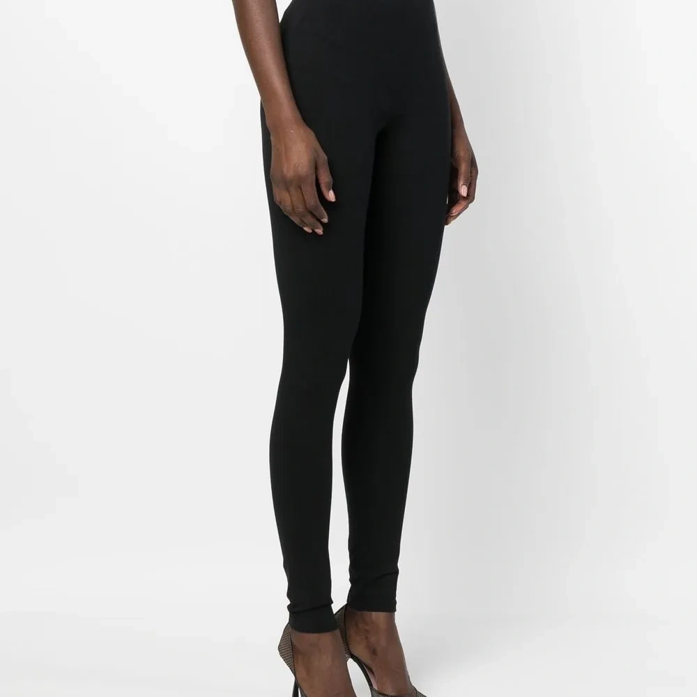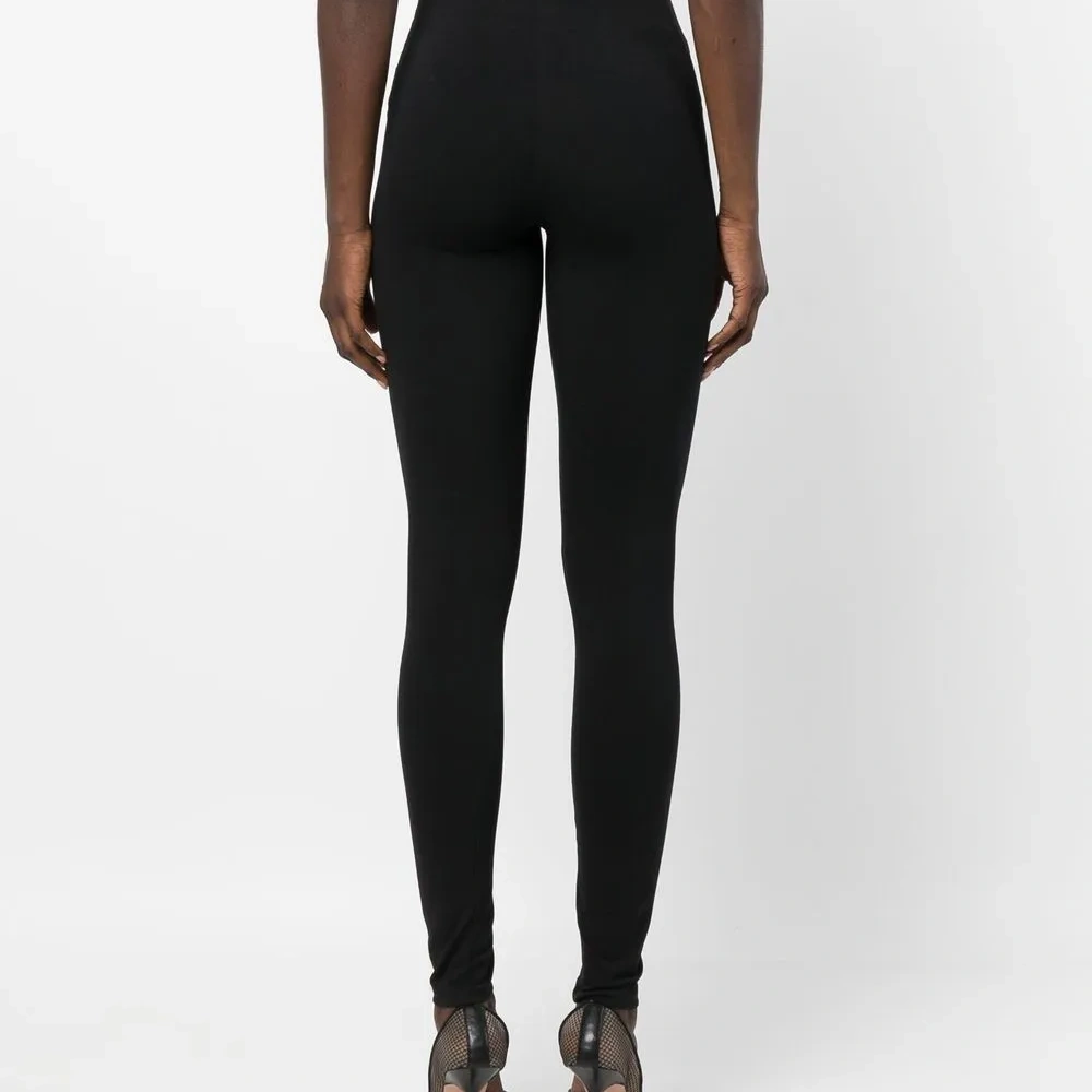 Черный, декор в виде логотипа, пояс с логотипом, укороченная длина и эластичный материал.