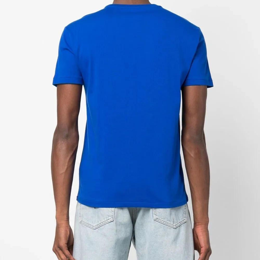 Синий, хлопок, ткань джерси, знаковый логотип Polo Pony, круглый вырез, короткие рукава и прямой подол.