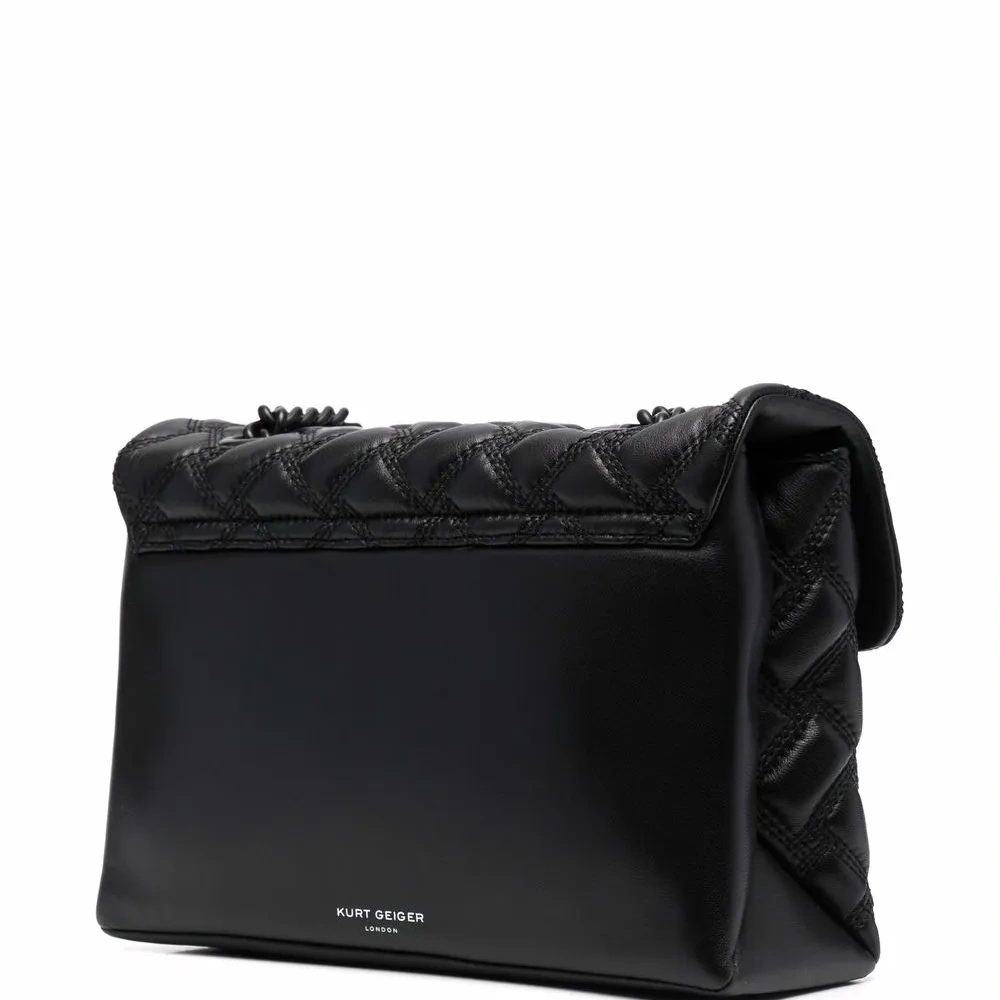 Стеганая модель, подвеска в форме головы орла, принт с логотипом сзади, несколько отделений, внутренние прорезные карманы, откидной клапан на магните и съемный цепочный ремень на плечо. Цвет: черный.