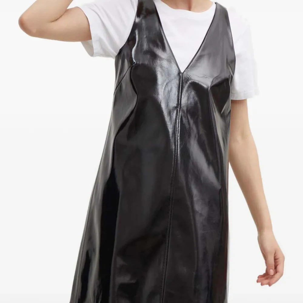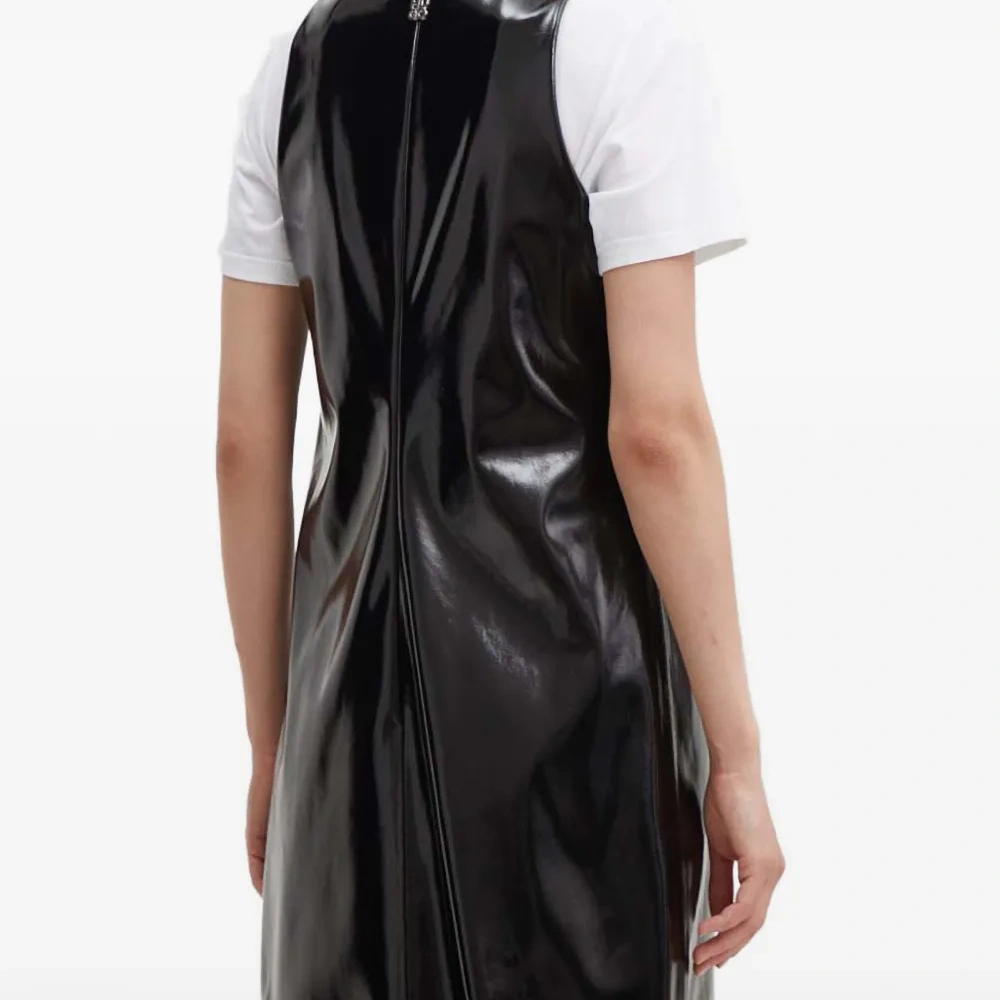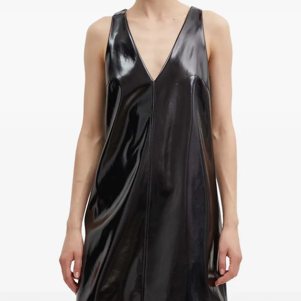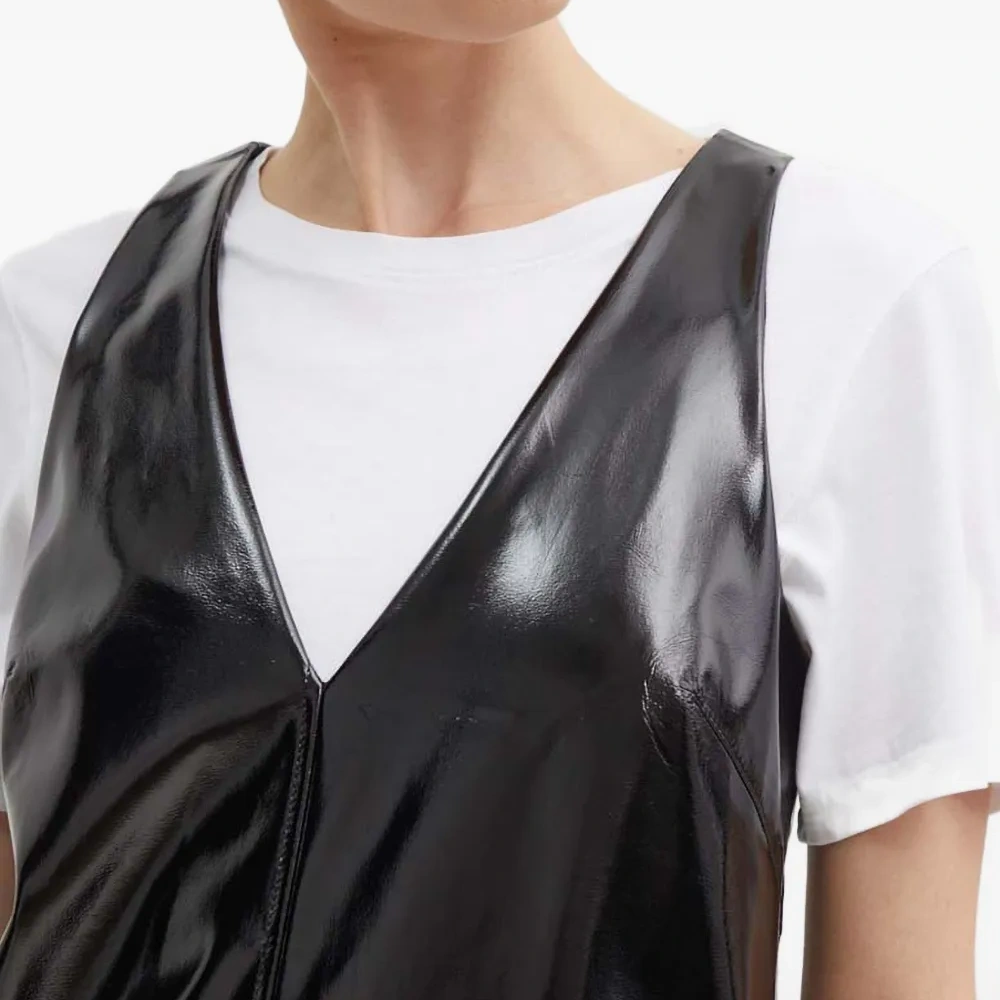 черный топ без рукавов с V-образным вырезом, отделкой на панелях, застежкой-молнией сзади и прямым подолом
