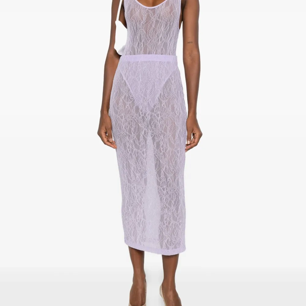 лиловая кружевная фактурная майка без рукавов с круглым вырезом