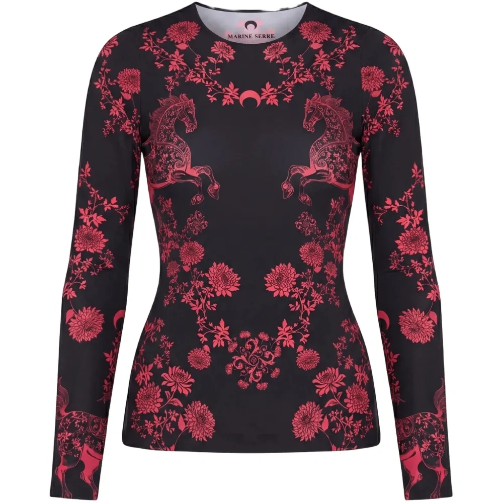 Длиннорукая футболка с принтом лошадей