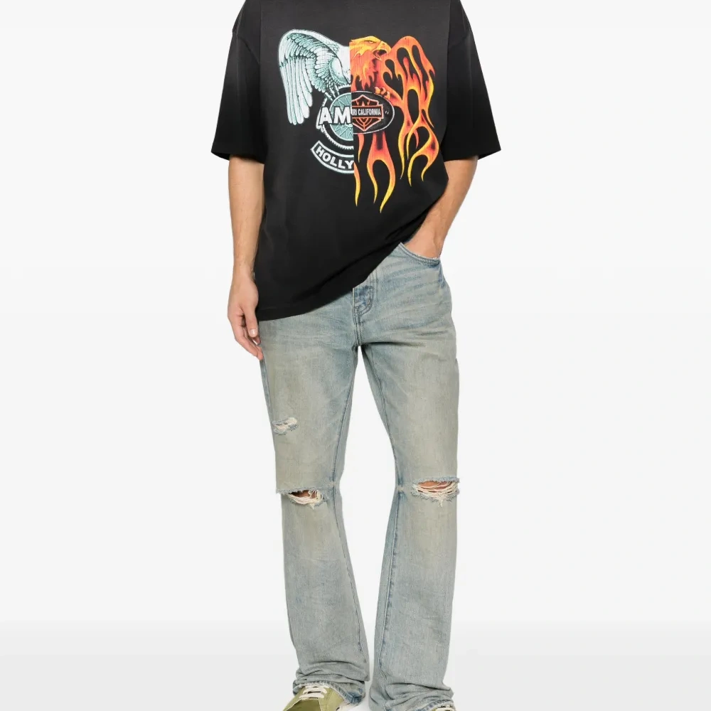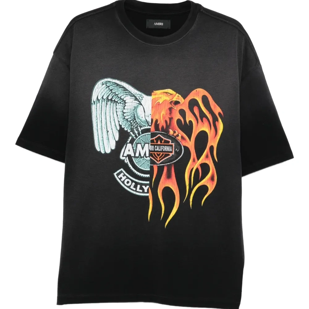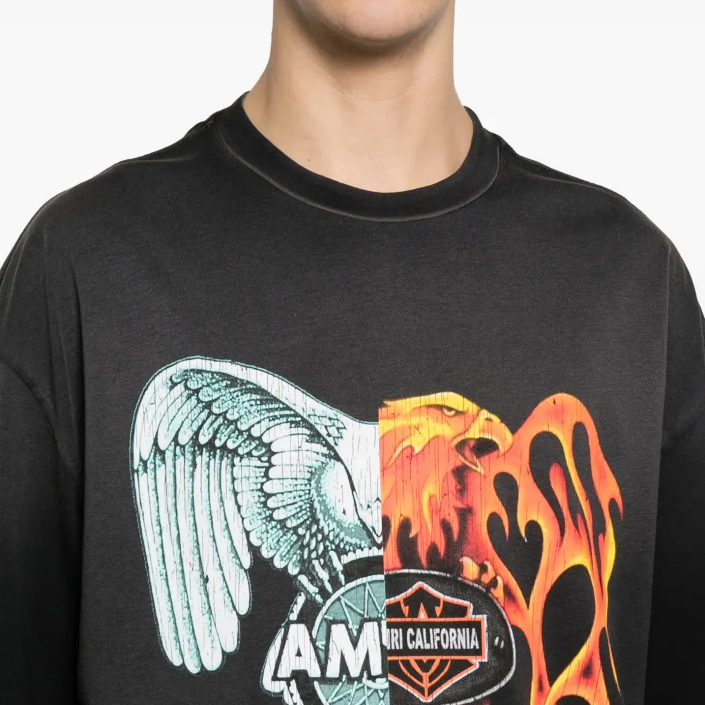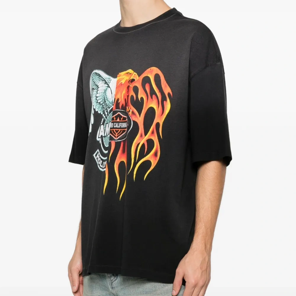 черная футболка с графическим принтом, круглым вырезом и короткими рукавами