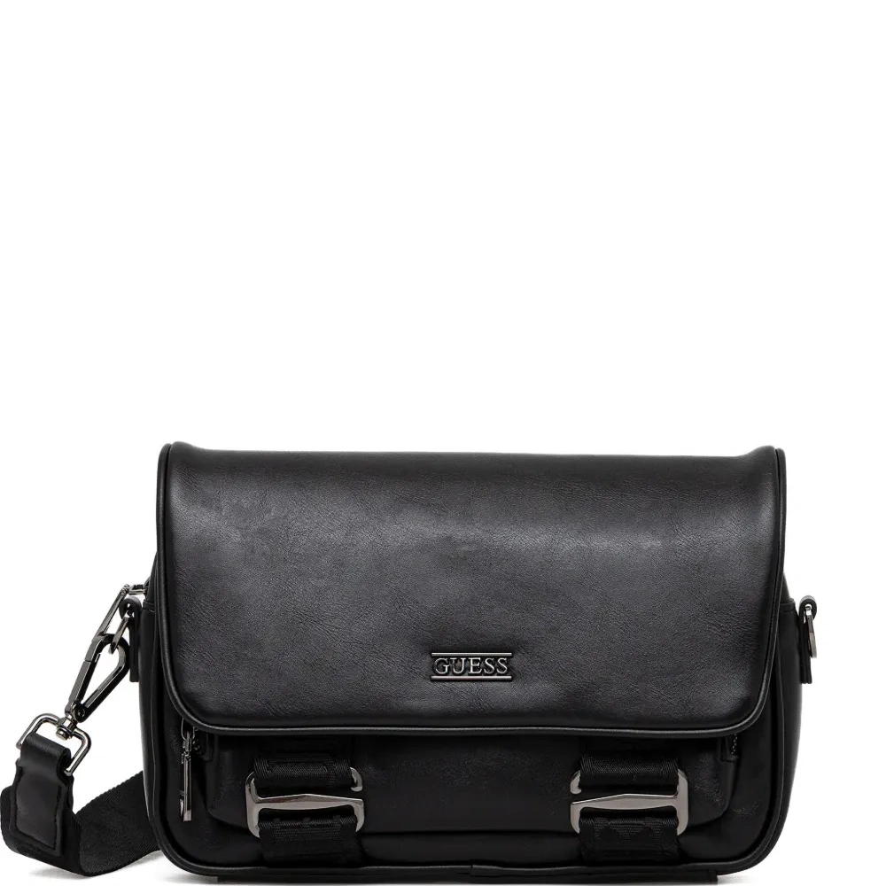 черный регулируемый наплечный ремень, нашивка с логотипом, карман на молнии, пряжка, клапан