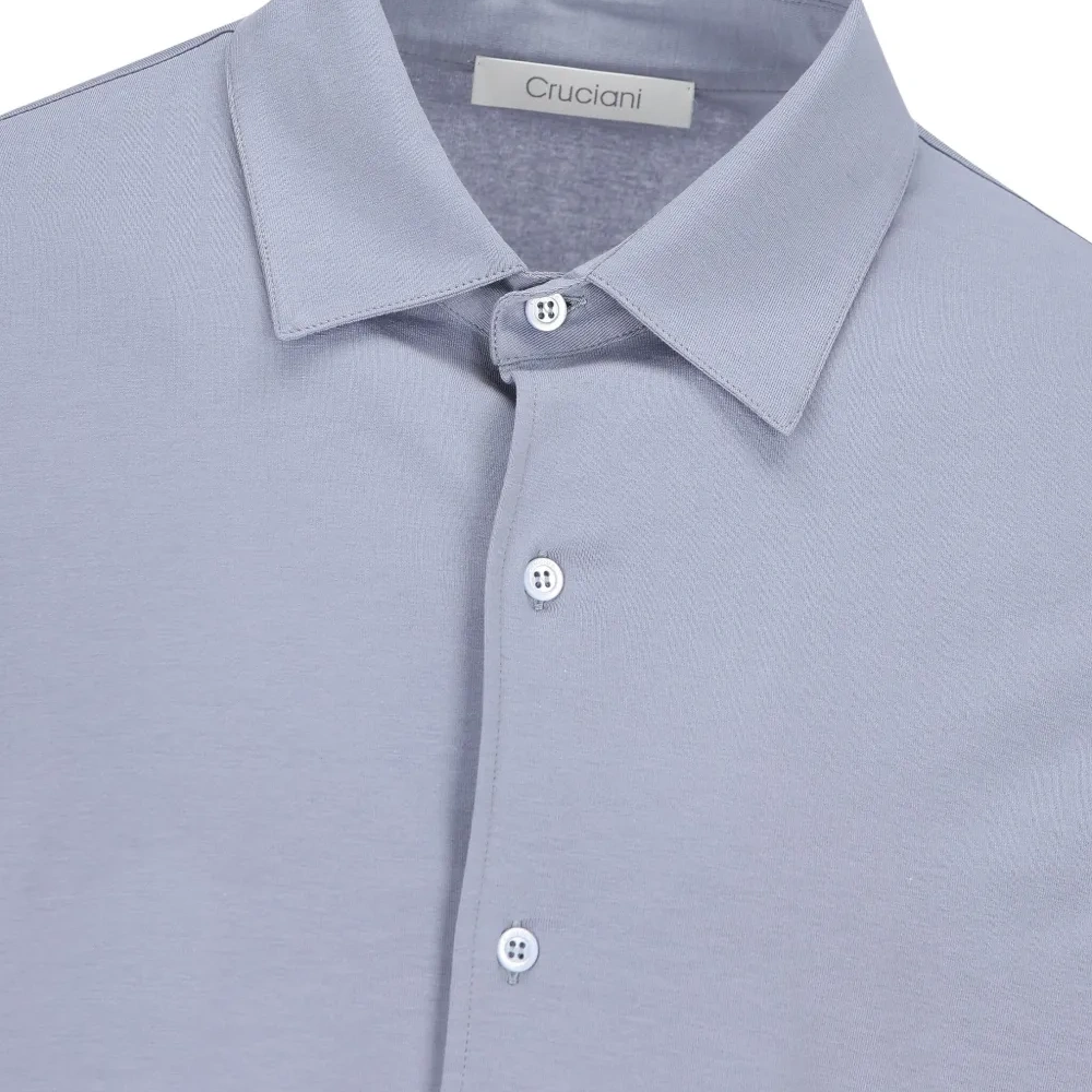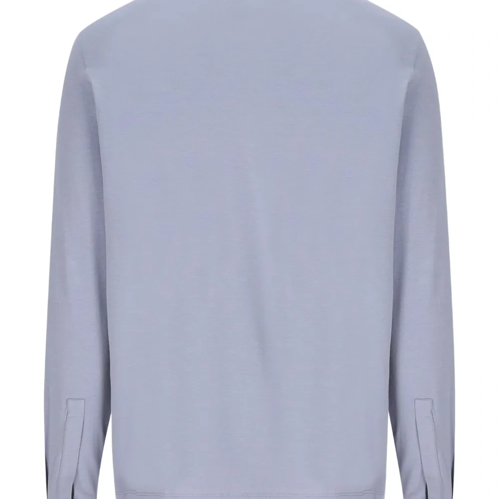 светло-голубой, застёжка на пуговицы, манжеты с регулируемой шириной, длинные рукава, воротник-стойка, смесь хлопка