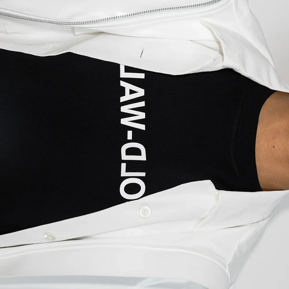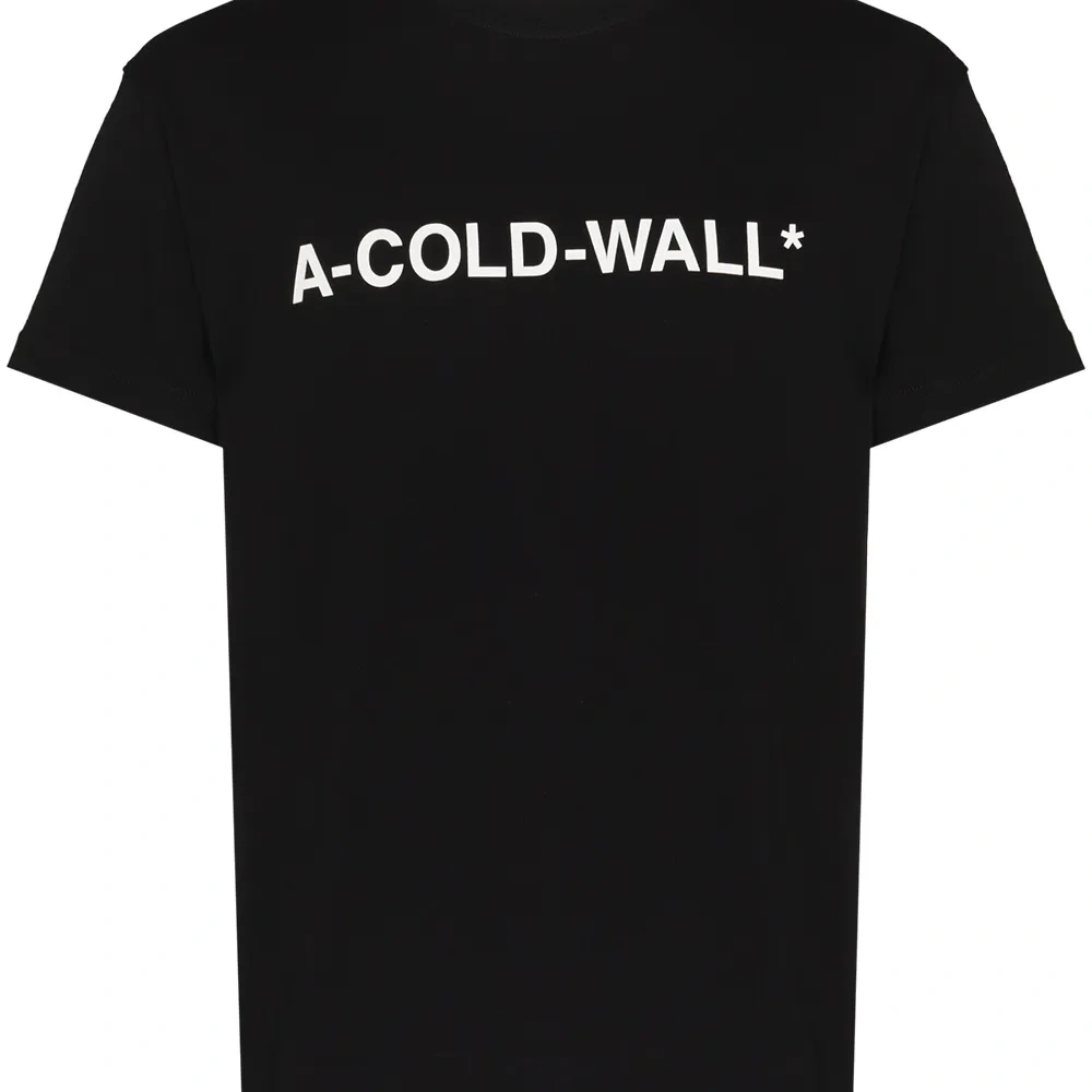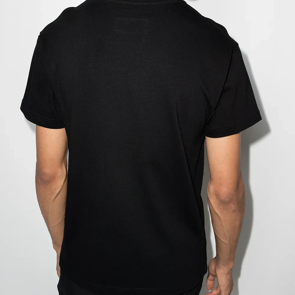 Логотип спереди, круглый вырез, короткие рукава и прямой подол. Цвет: черный.