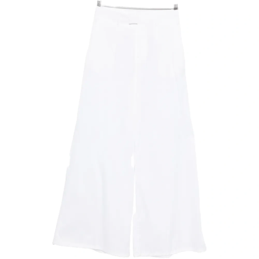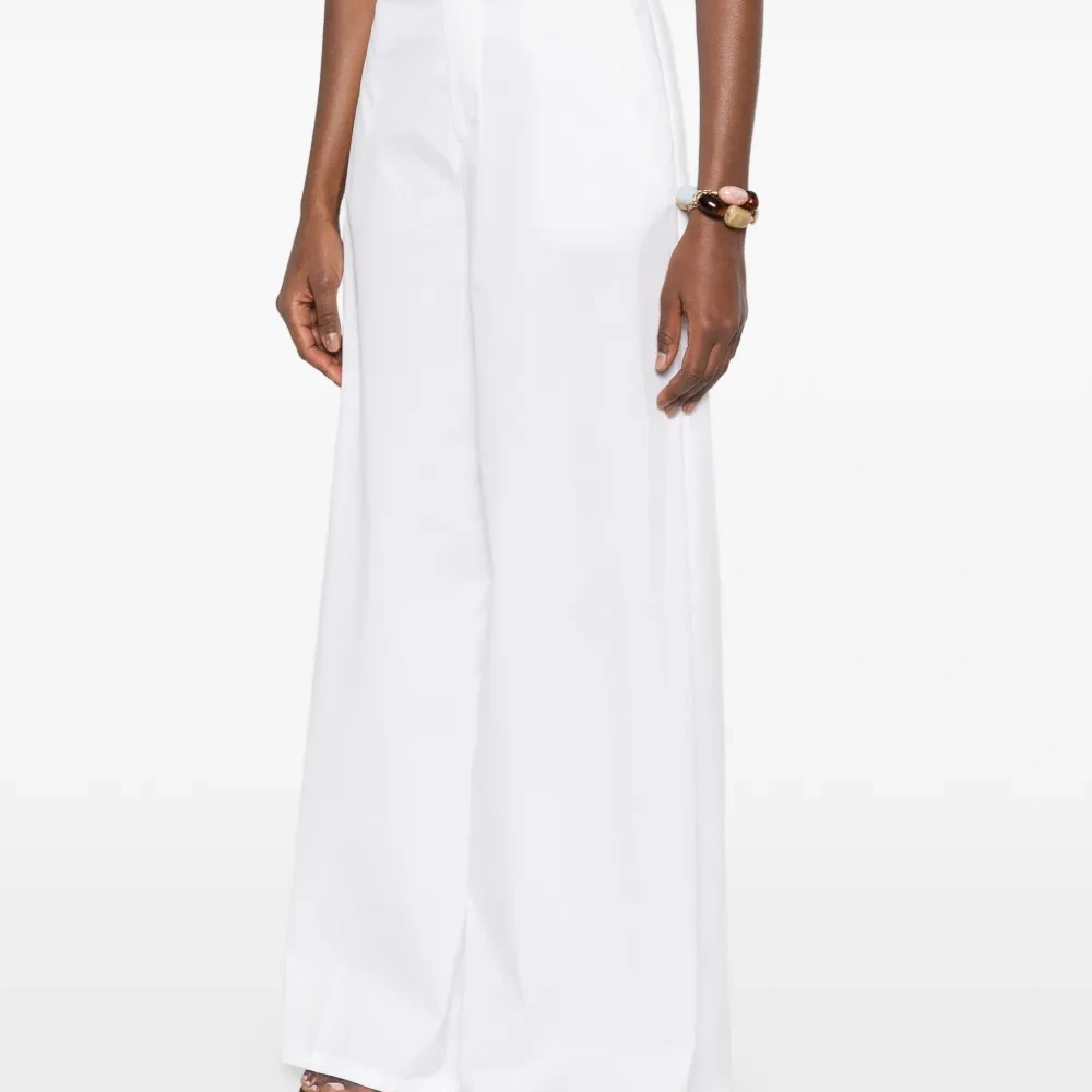 белые широкие брюки с боковыми карманами, шлевками для ремня и скрытой застежкой