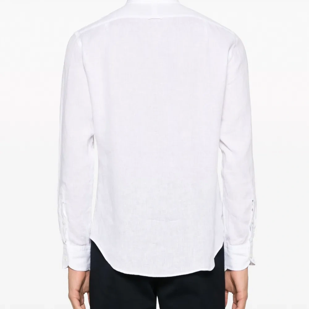Белый, лен, отложной воротник, застежка на пуговицах спереди, длинные рукава, манжеты на пуговицах и закругленный подол. Этот товар как минимум на 50% состоит из материалов, которые признаны более безопасными для окружающей среды, и/или произведены с использованием методов, которые помогают сократить потребление воды и химических веществ. Узнать больше о том, какие товары получают отметку «Ответственный выбор», можно из материала «Как мы оцениваем экологичность и этичность».