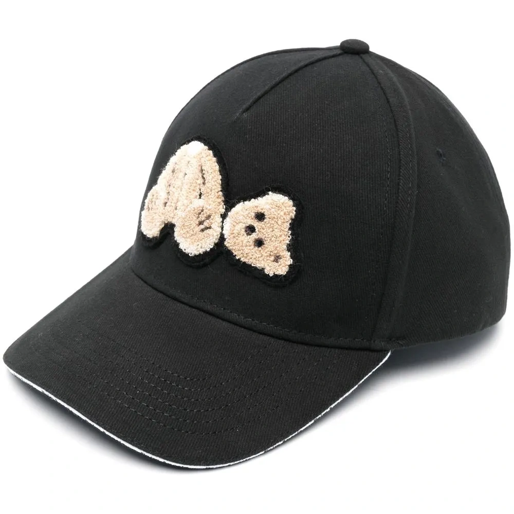 Черный, хлопок, декор Teddy Bear, закругленный козырек и регулируемый дизайн.