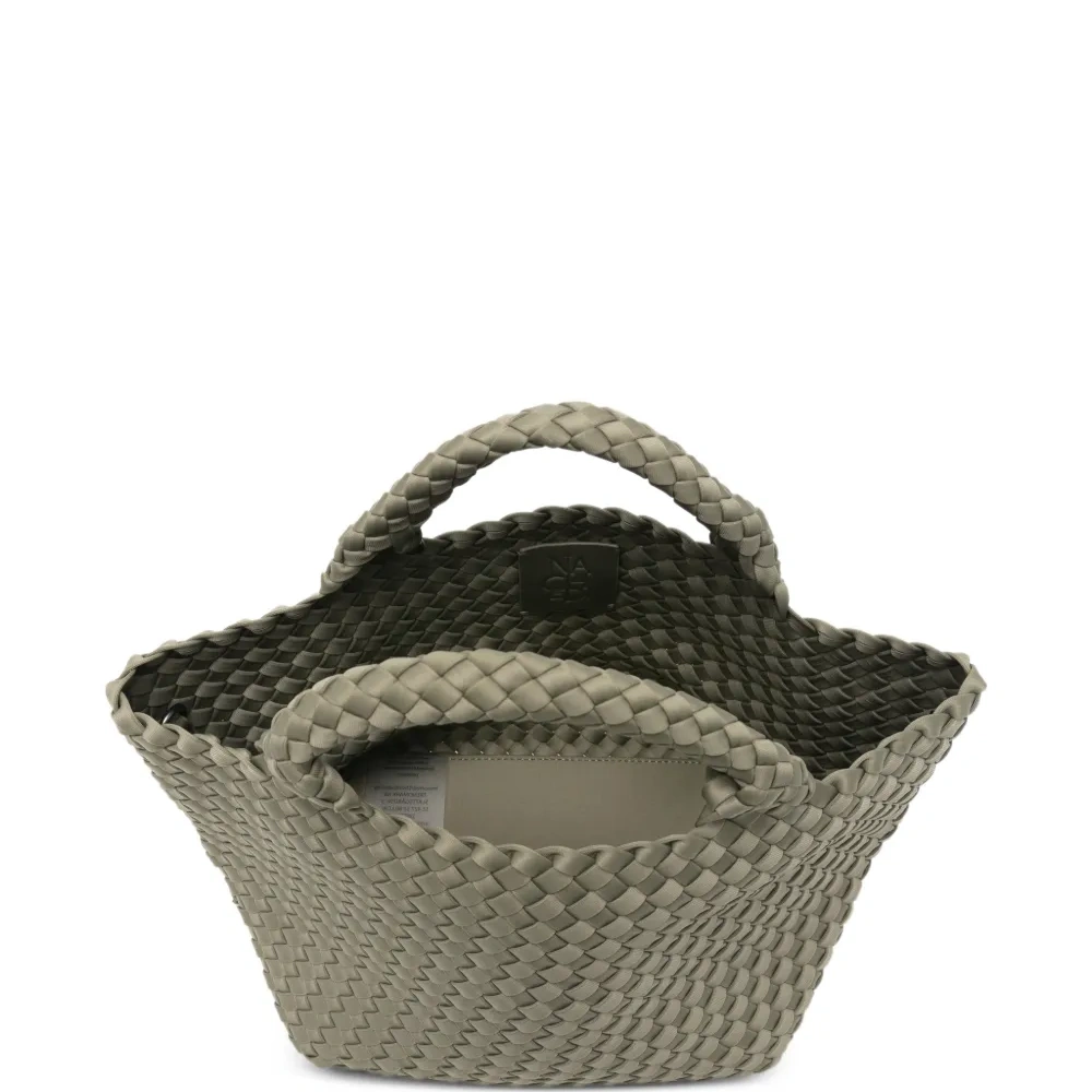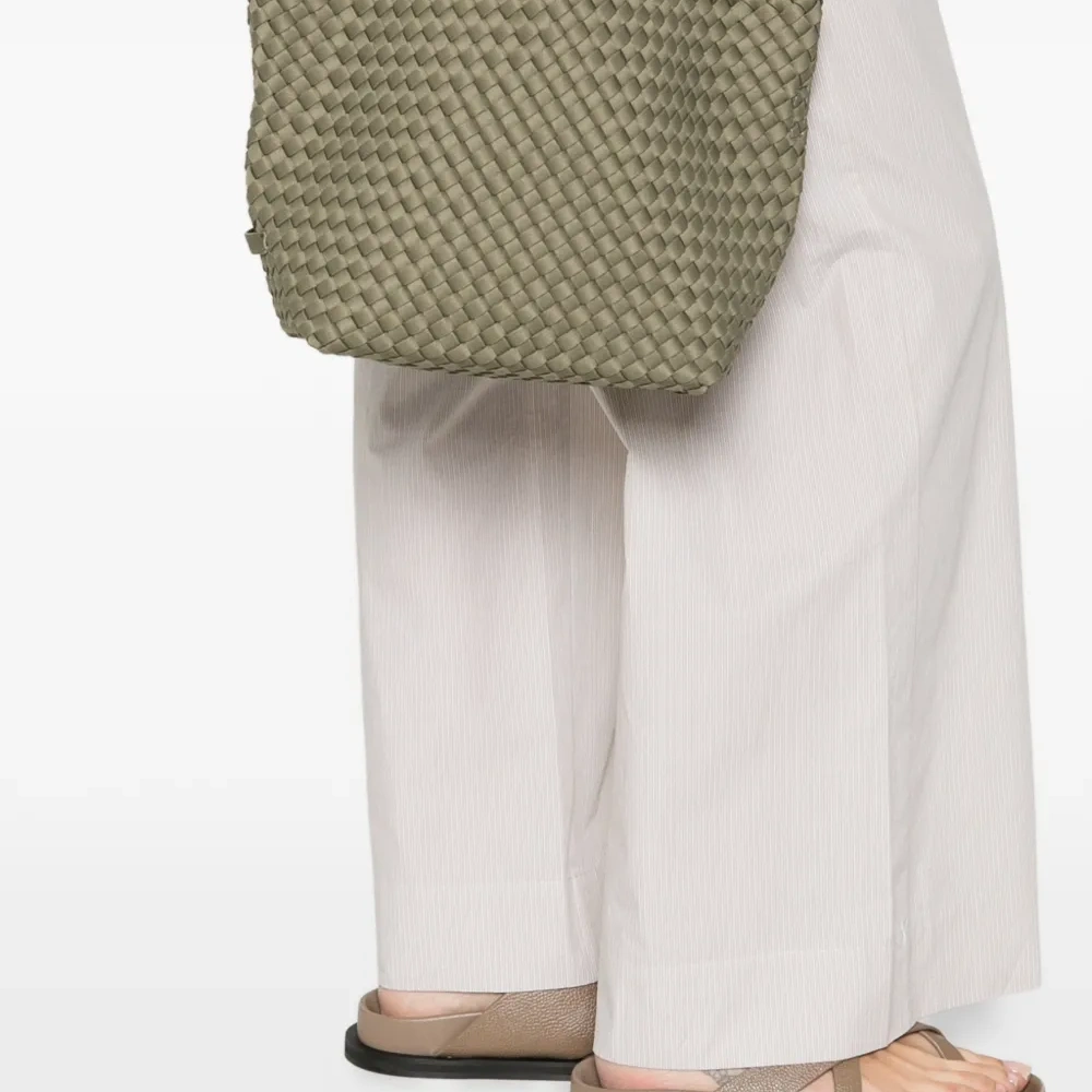 оливково-зеленая плетёная сумка с верхней ручкой, съемным чехлом, застежкой на молнии и регулируемым съемным ремнём