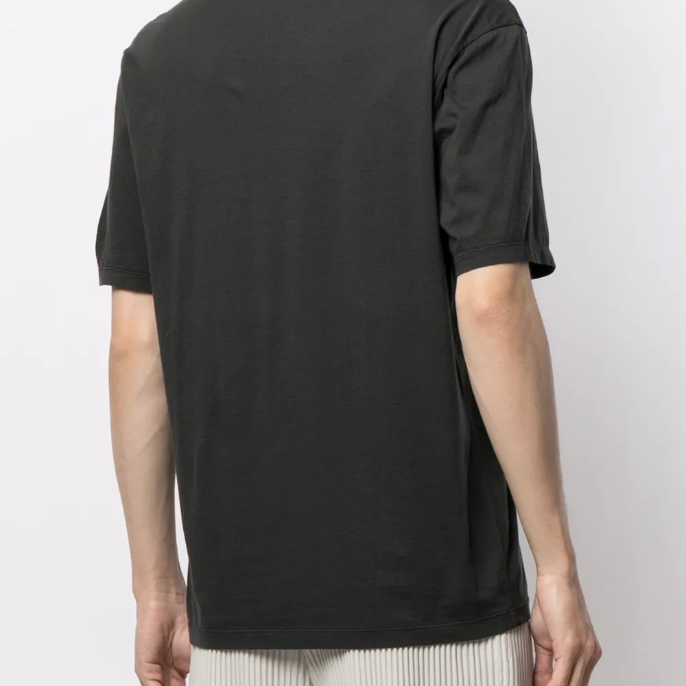 V-образный вырез, короткие рукава и прямой подол. Цвет: серый.