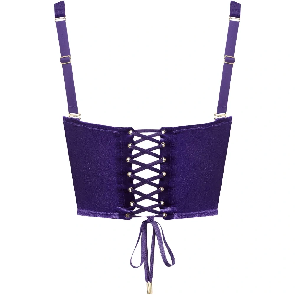 пурпурный корсет с шнуровкой, регулируемыми бретелями, бюстье-дизайном, тональной прострочкой и косточками