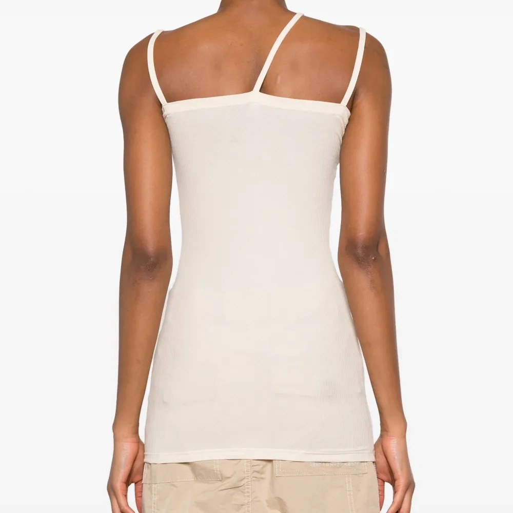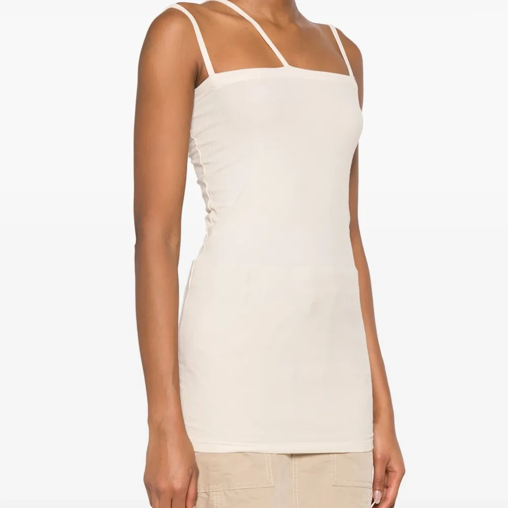 Светло-бежевый, смесовый органический хлопок, эластичный материал, квадратный вырез, без рукавов и прямой подол. Узнать больше о том, какие товары получают отметку «Ответственный выбор», можно из материала «Как мы оцениваем экологичность и этичность».
