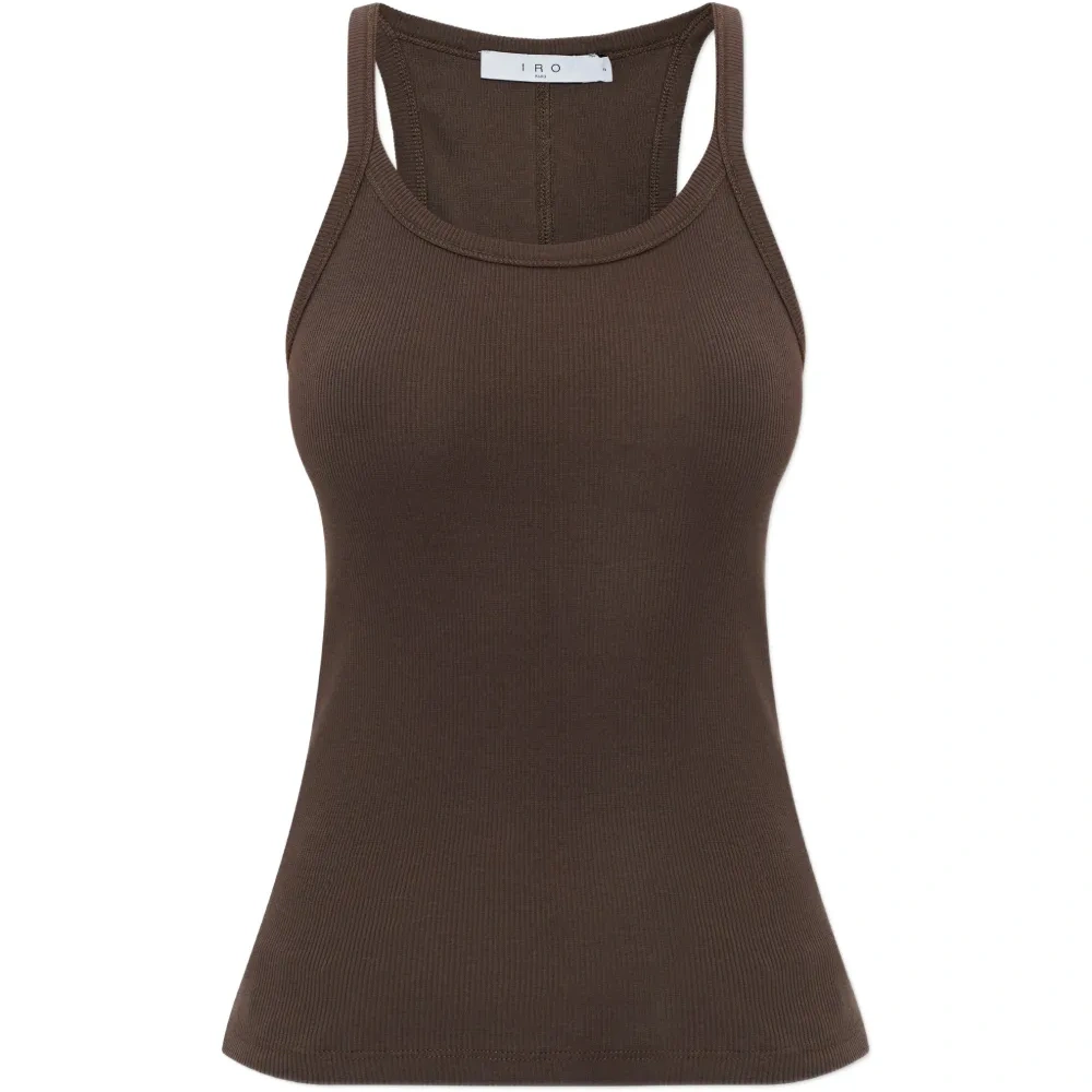 коричневый трикотажный топ в рубчик без рукавов с круглым вырезом