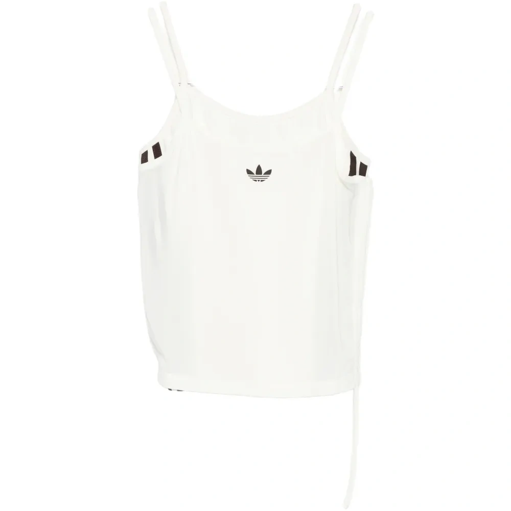 сливочного цвета топ без рукавов укороченного кроя с двойными лямками, логотипом и завязками по бокам