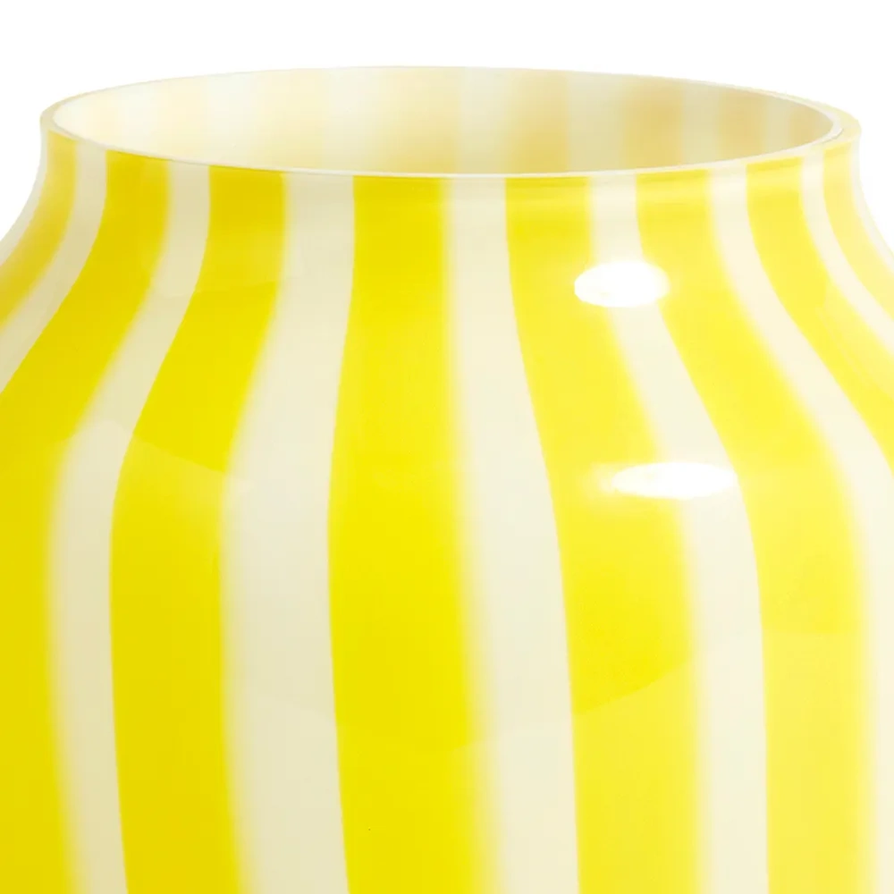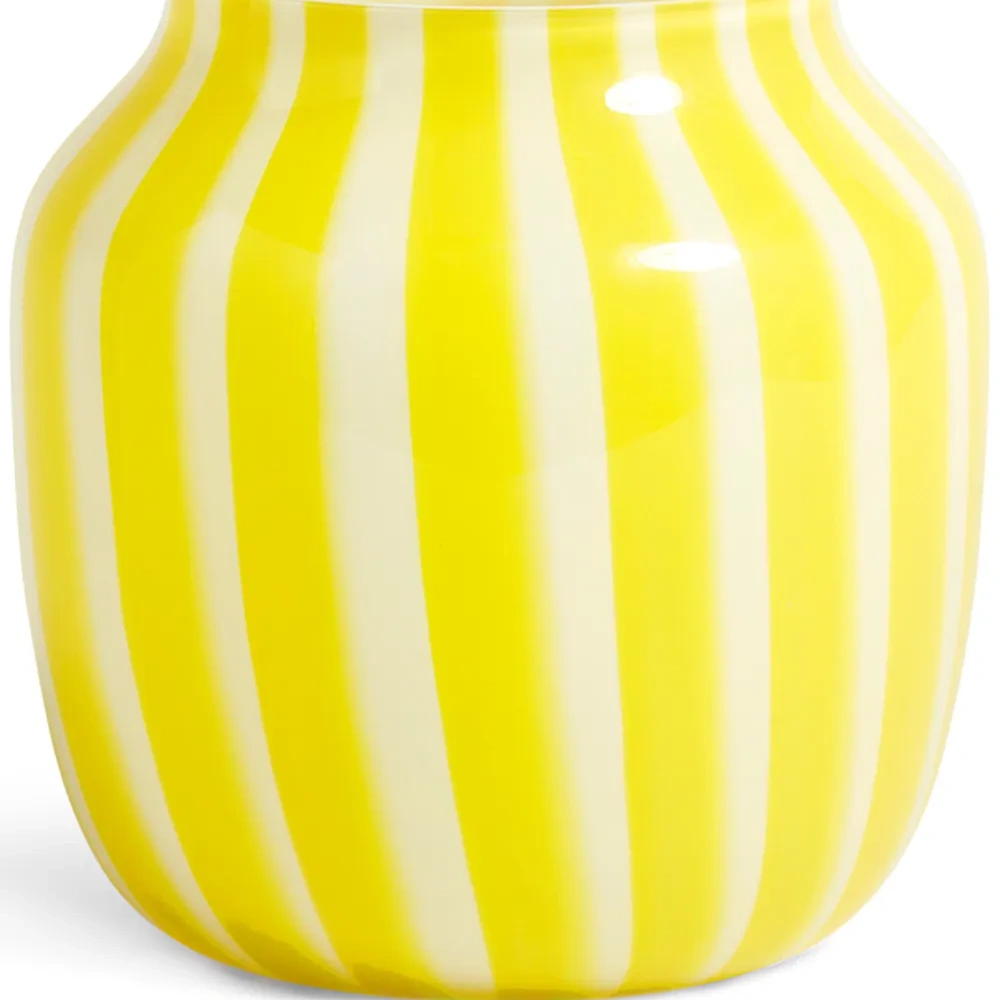 Широкая ваза в полоску от Hay. Изогнутая форма, дизайн в двух тонах и дизайн с открытым верхом. Цвет: желтый.