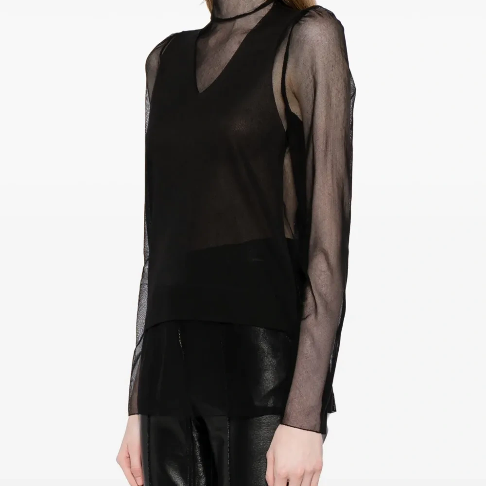 многослойный топ с высоким воротником