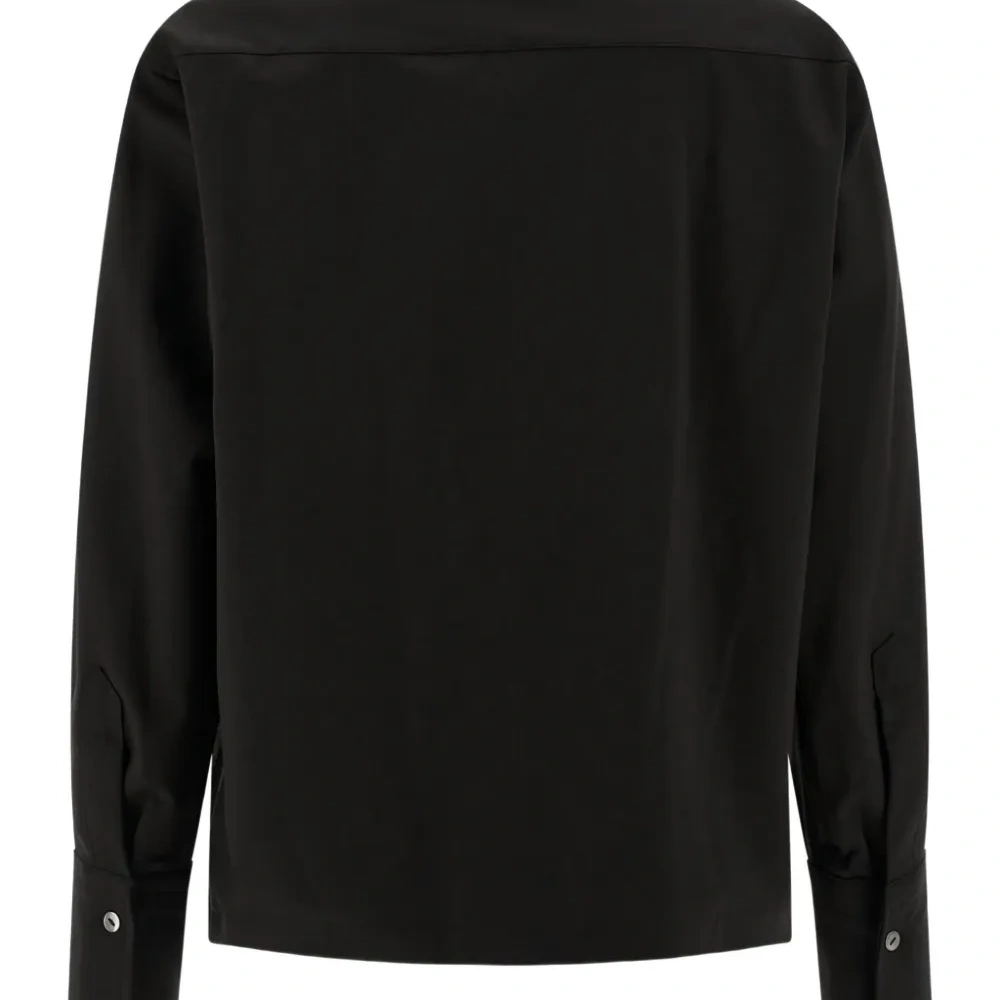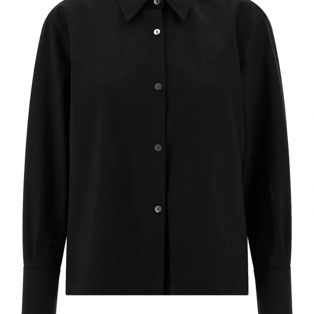 черная рубашка с застежкой на пуговицы, длинными рукавами и манжетами на пуговицах