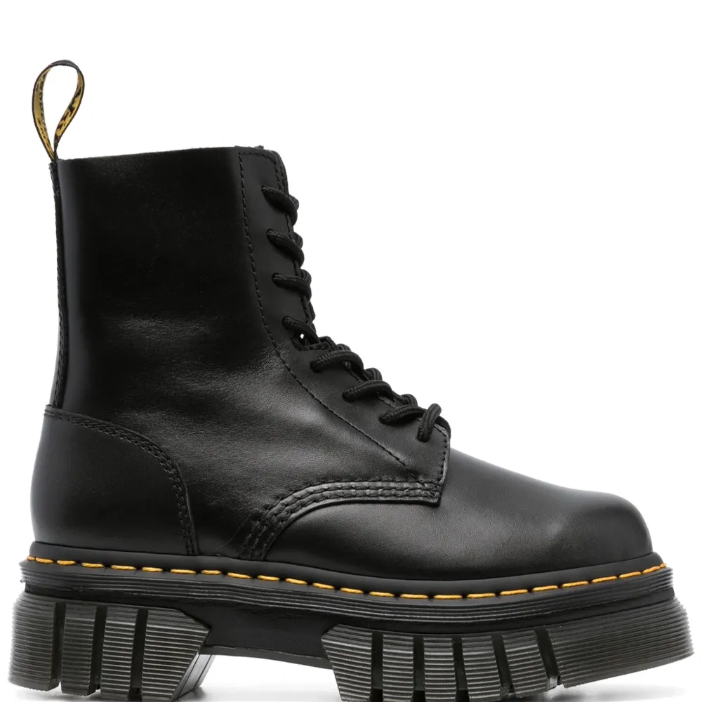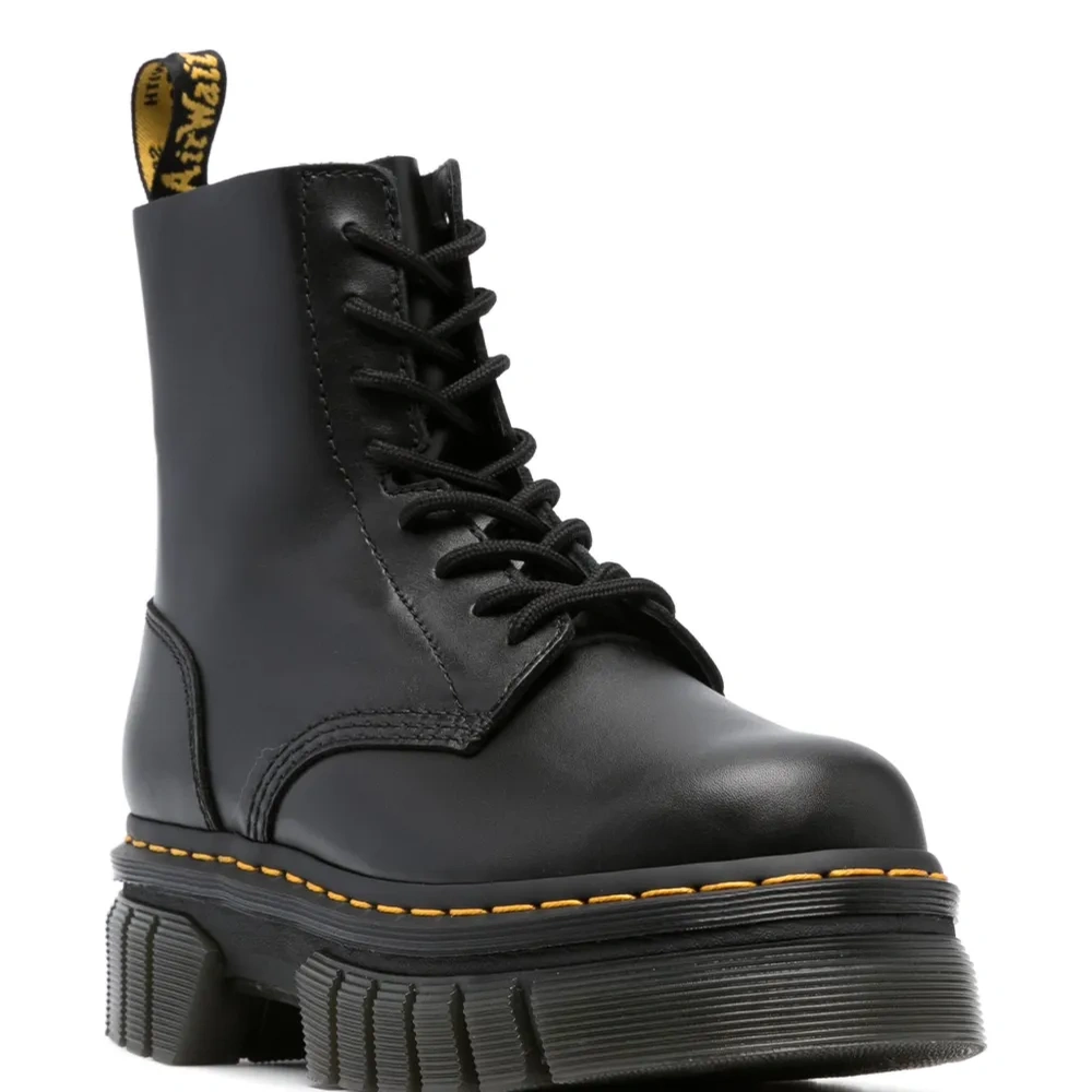 Черный, кожа наппа, шнуровка спереди, закругленный носок, рант, промежуточная подошва из этиленвинилацетата (EVA) и рифленая резиновая подошва.