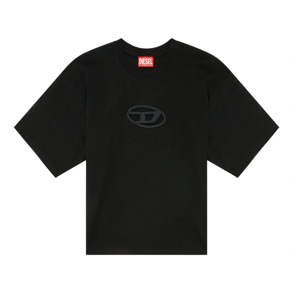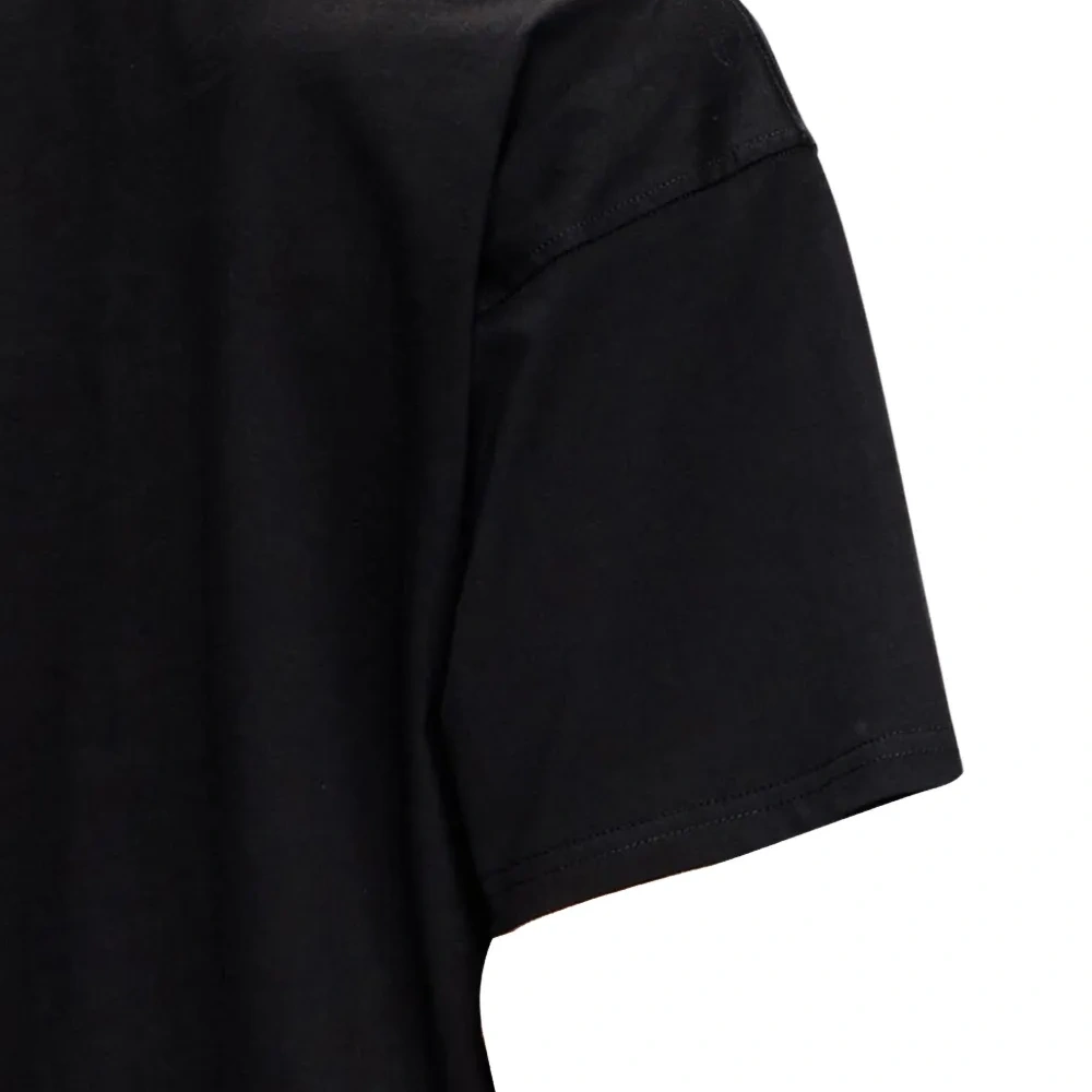 черная футболка с вырезом, логотипом, круглым вырезом и короткими рукавами