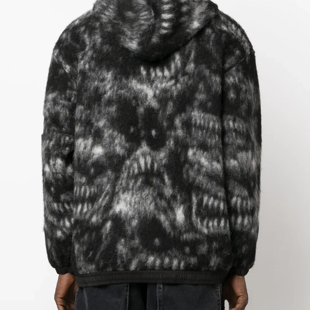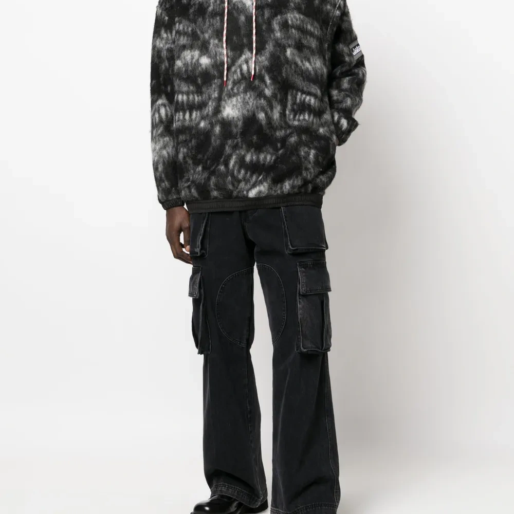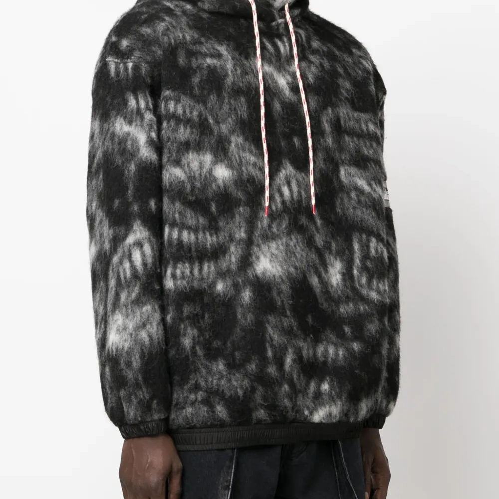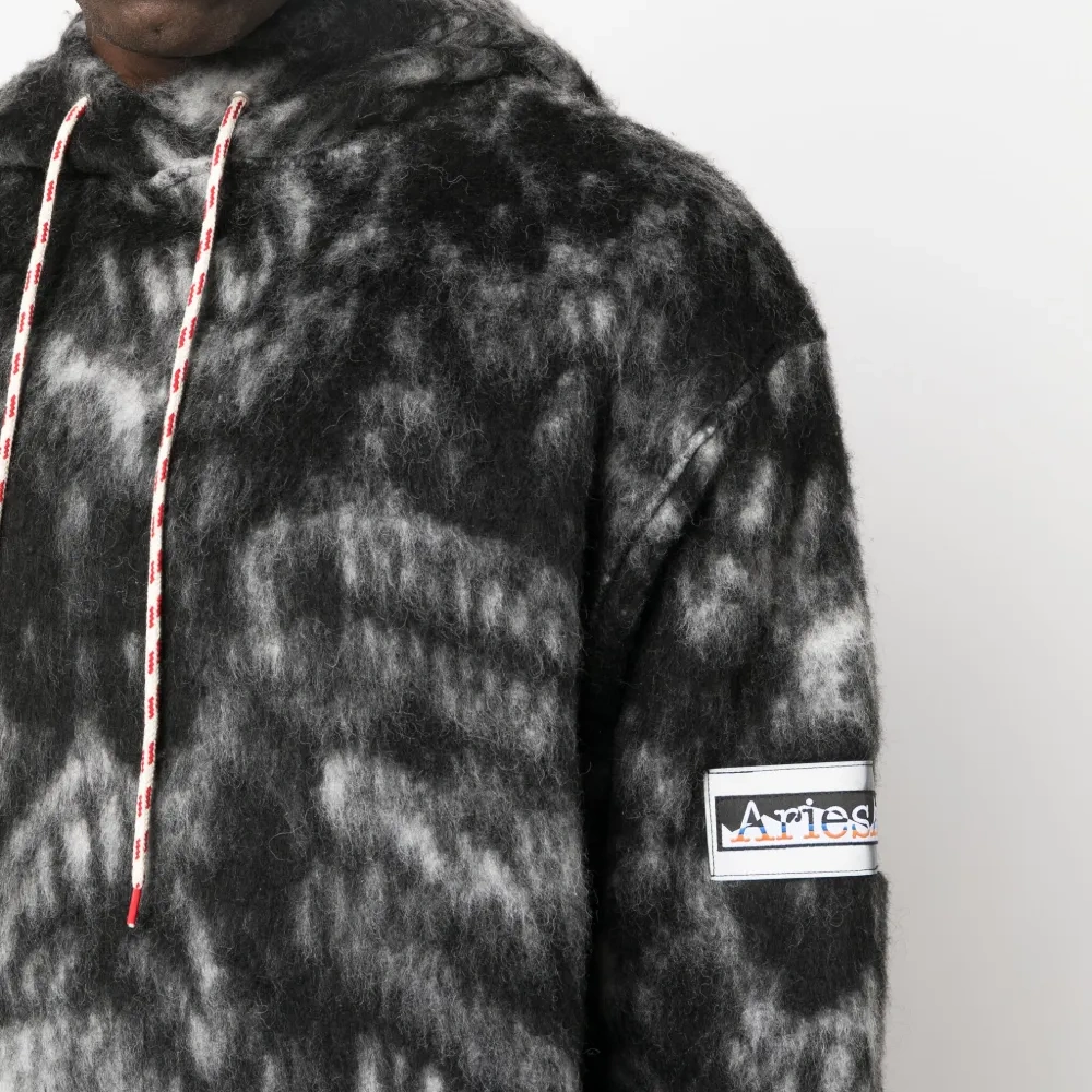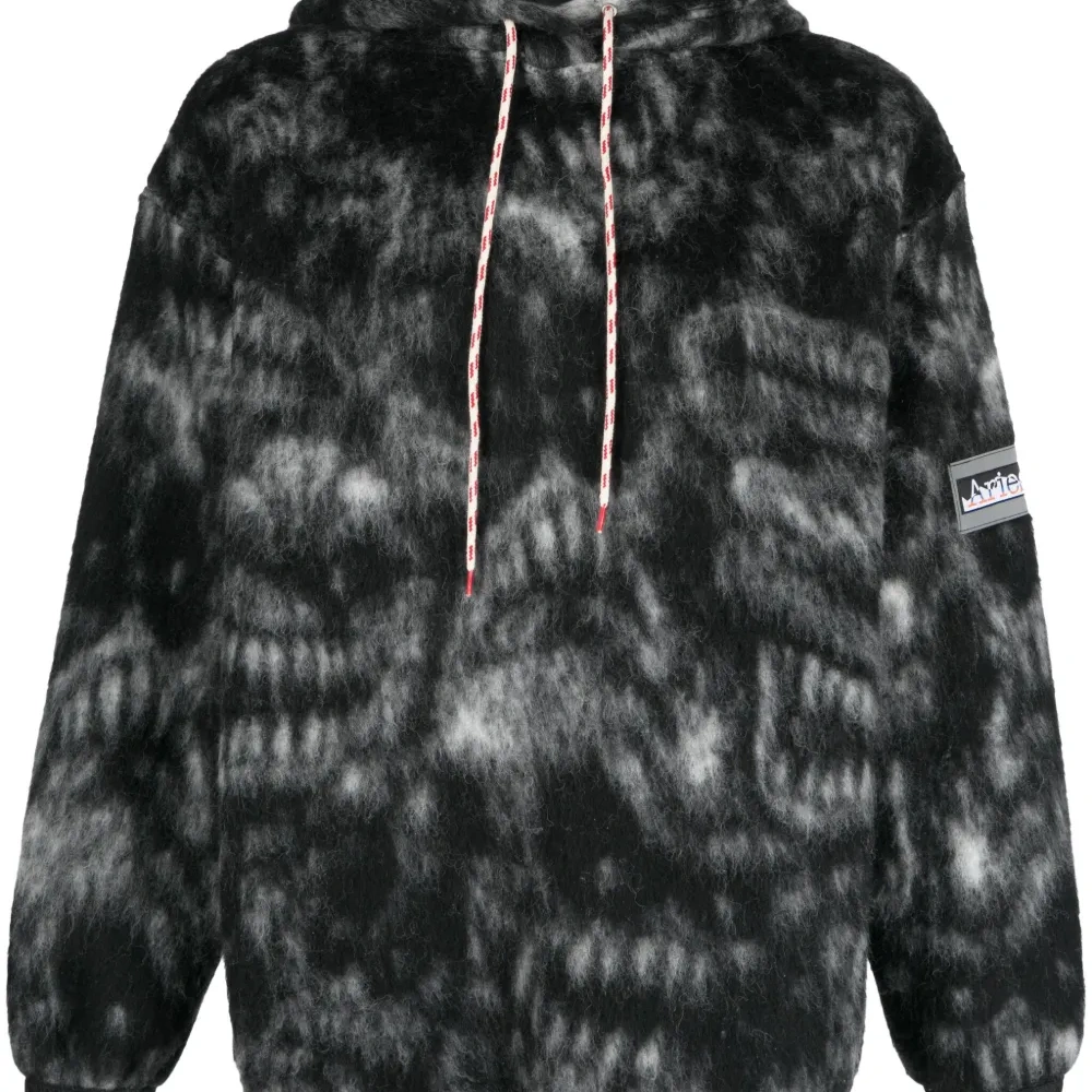 Строчка в тон, абстрактный принт, нашивка с логотипом на рукаве, затягивающийся на шнурок капюшон, приспущенные плечи, длинные рукава, эластичные манжеты и эластичный подол.