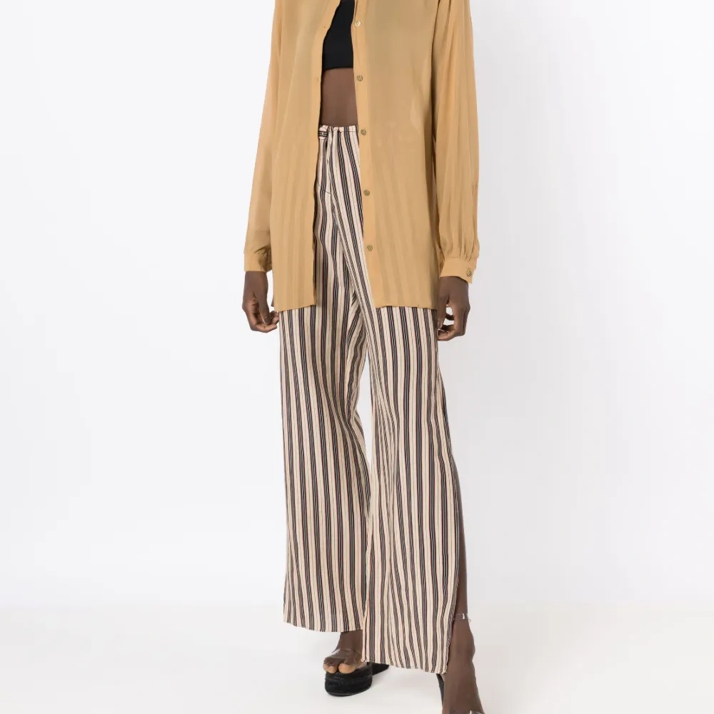 Расцветка Light Brown, полупрозрачный дизайн, классический воротник, застежка на пуговицах спереди, длинные рукава, манжеты на пуговицах и закругленный подол.