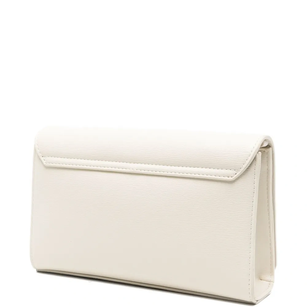 бежевый ремешок-цепочка, декоративная деталь в виде сердца, фурнитура под золото, отделка строчкой, клапан